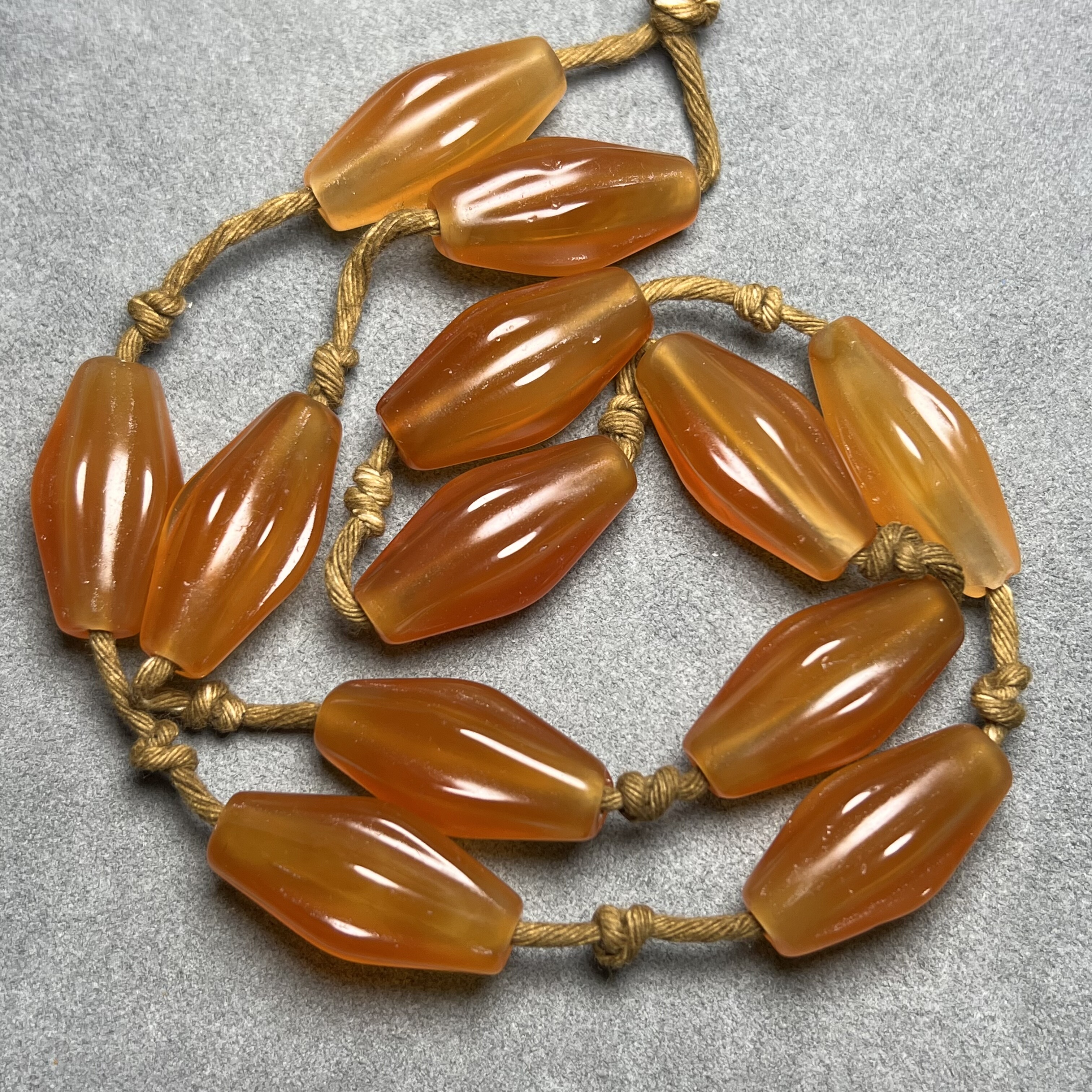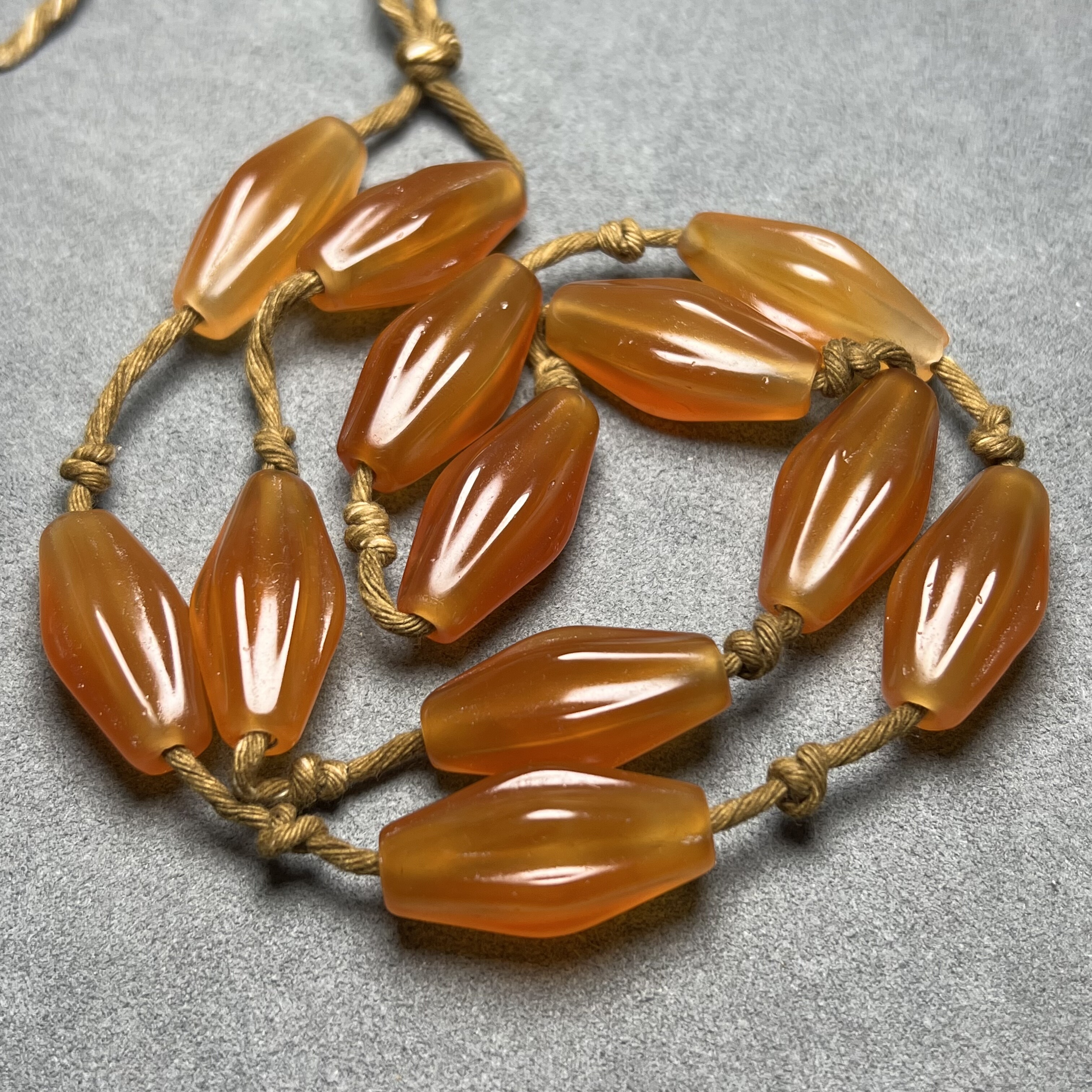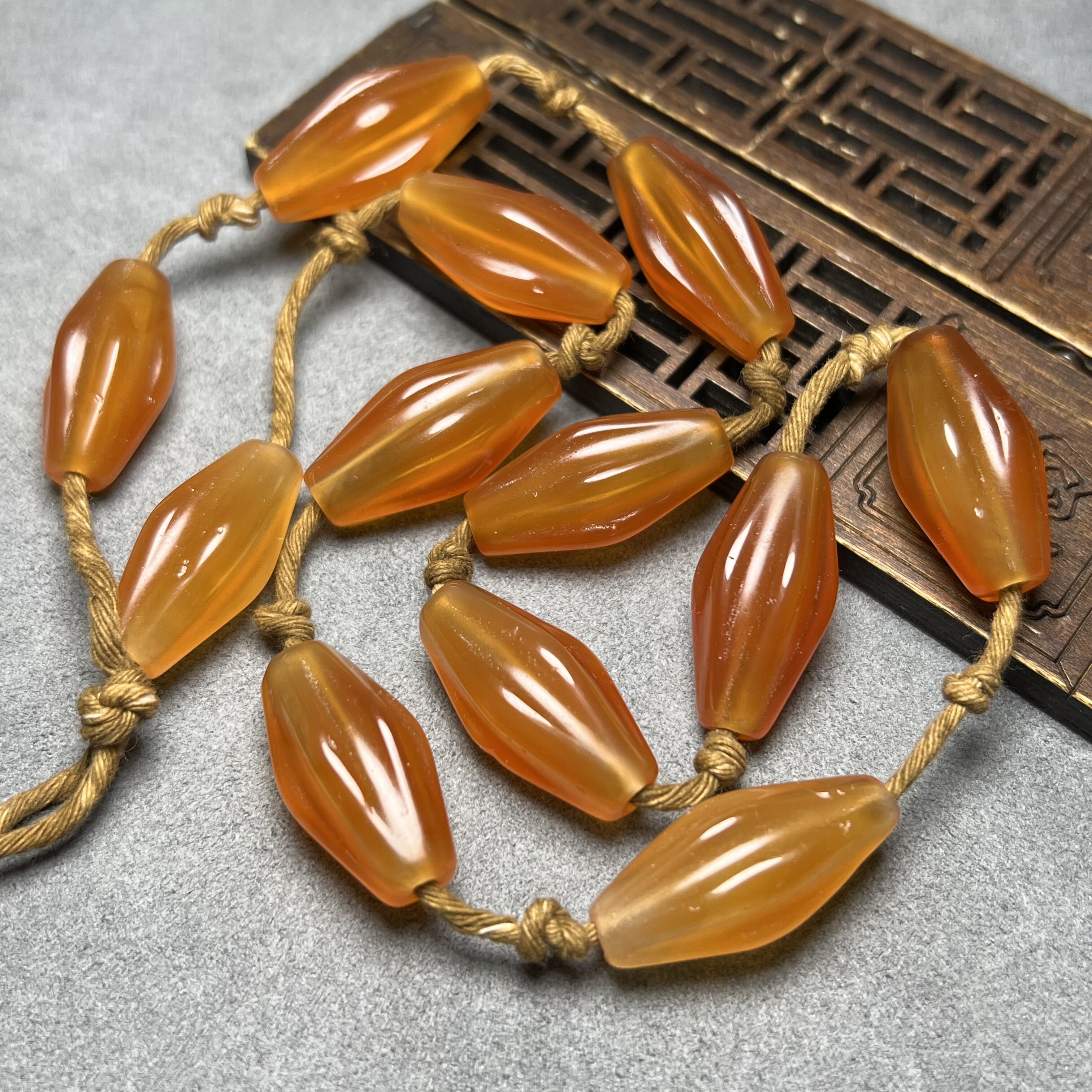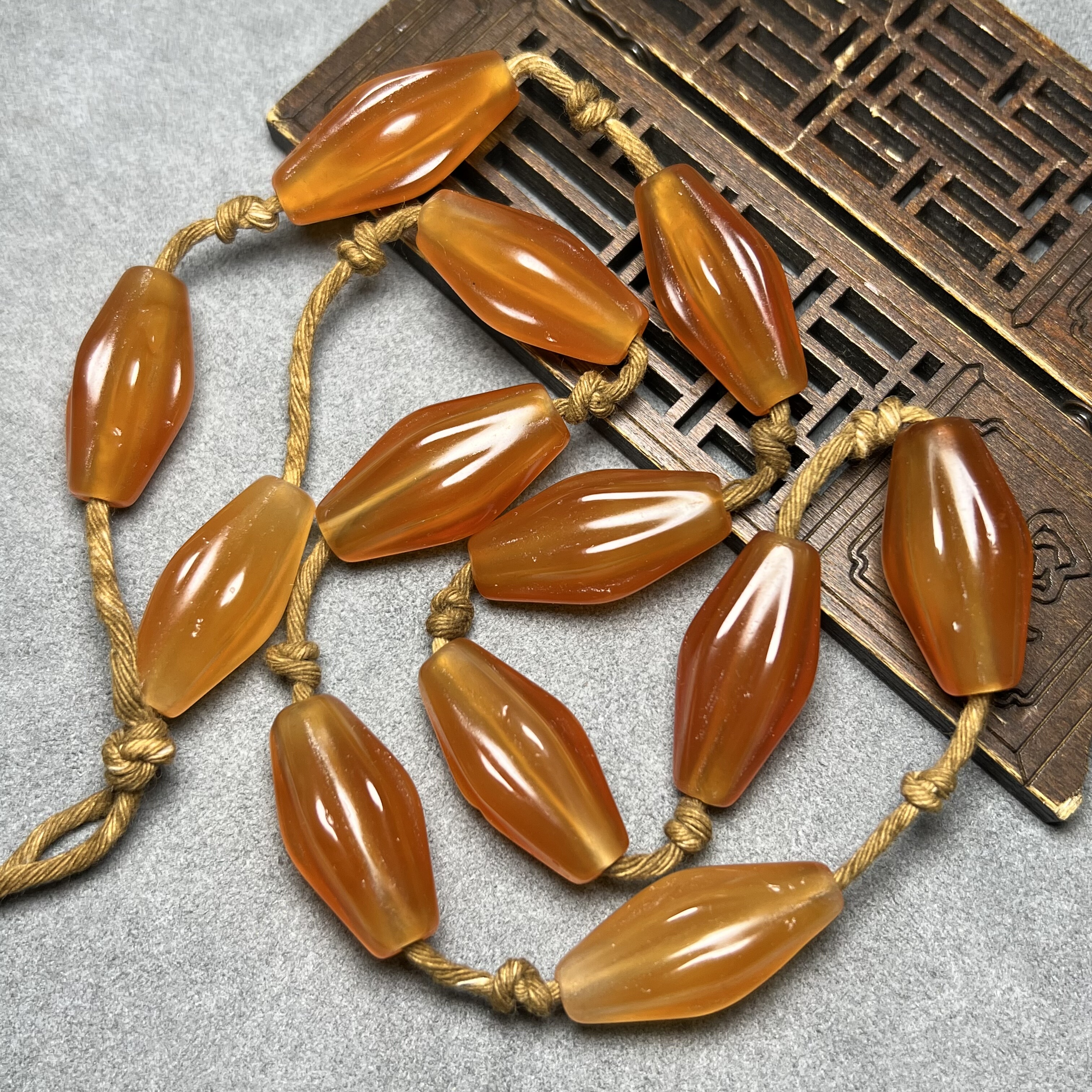 高古老红黄玛瑙长瓜棱珠玛瑙手链天然西周老型管珠手串佛珠配饰