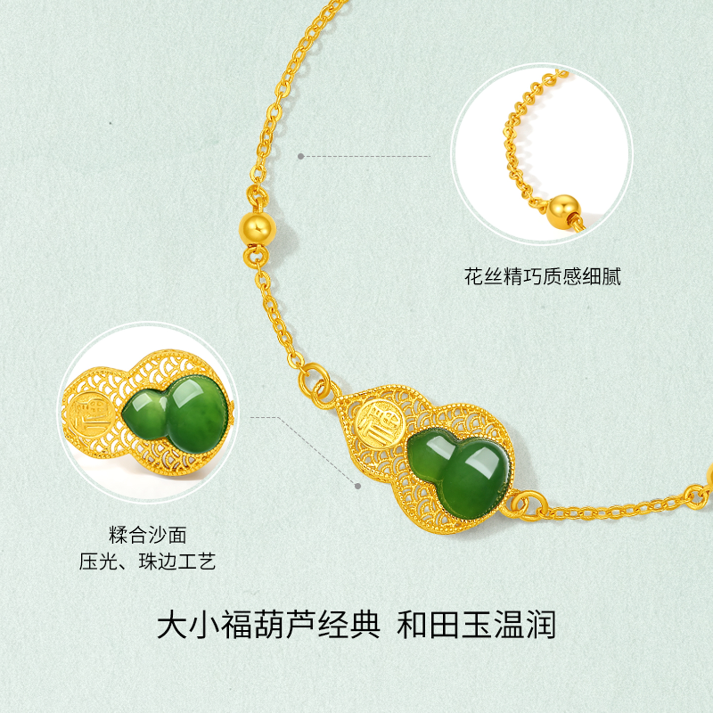 周六福金镶玉和田玉手串女黄金碧玉岚玥手链手饰镶爱999节日礼物