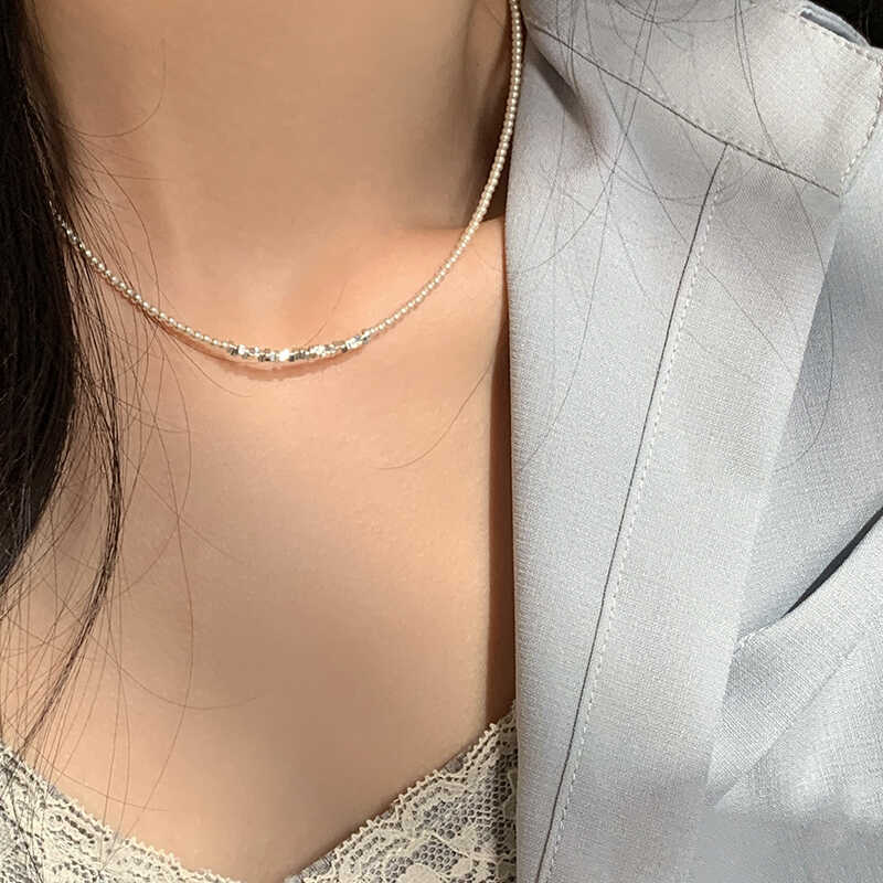 施家碎银几两仿珍珠项链配饰女款轻奢小众设计感小米珠串珠锁骨链
