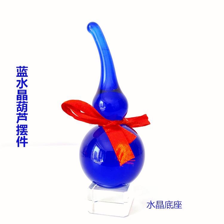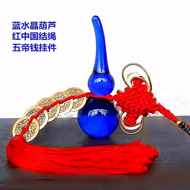 蓝色水晶葫芦摆件铜五帝钱家居客厅办公室卧室桌面招财兰汽车挂件