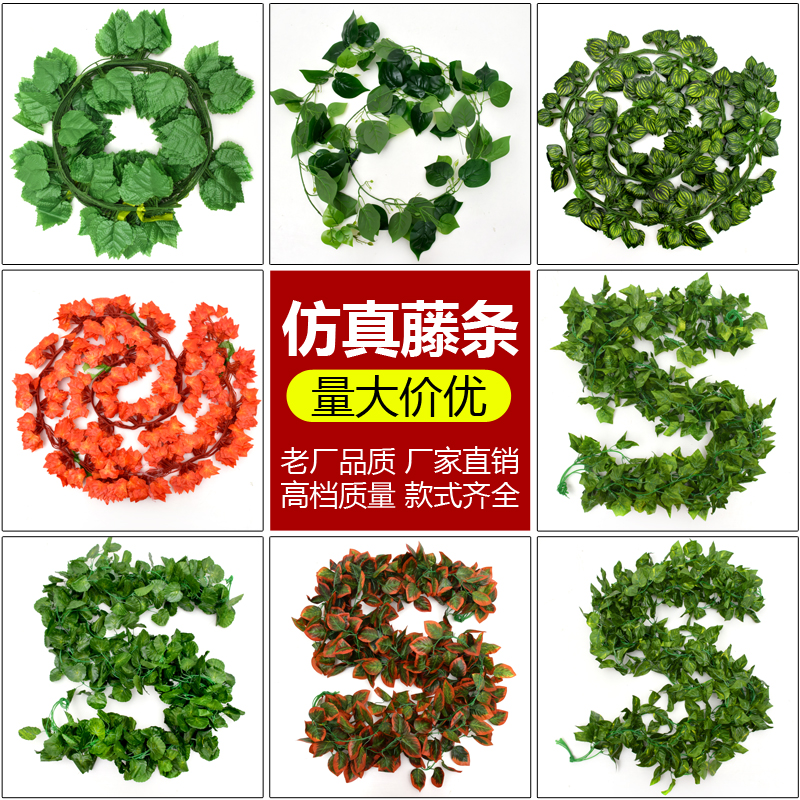 仿真藤条爬山虎植物葡萄叶绿树叶塑料假花水管道缠绕藤蔓吊顶装饰