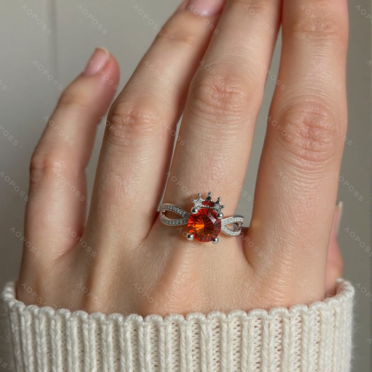AOPOSS白姿[星耀皇冠]戒指女款原创设计红色闪小众耳饰个性时尚