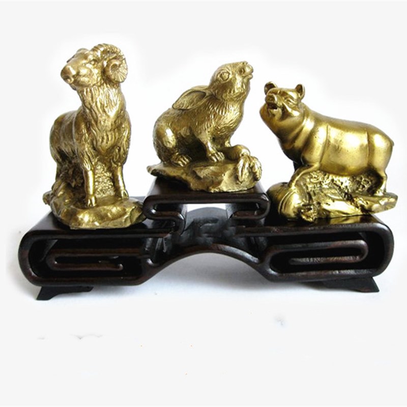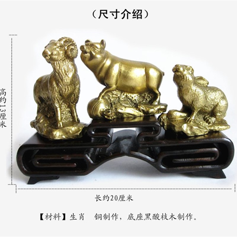 铜猪兔羊亥卯未三合生肖摆件y办公室客厅书房桌面摆设吉祥装饰品