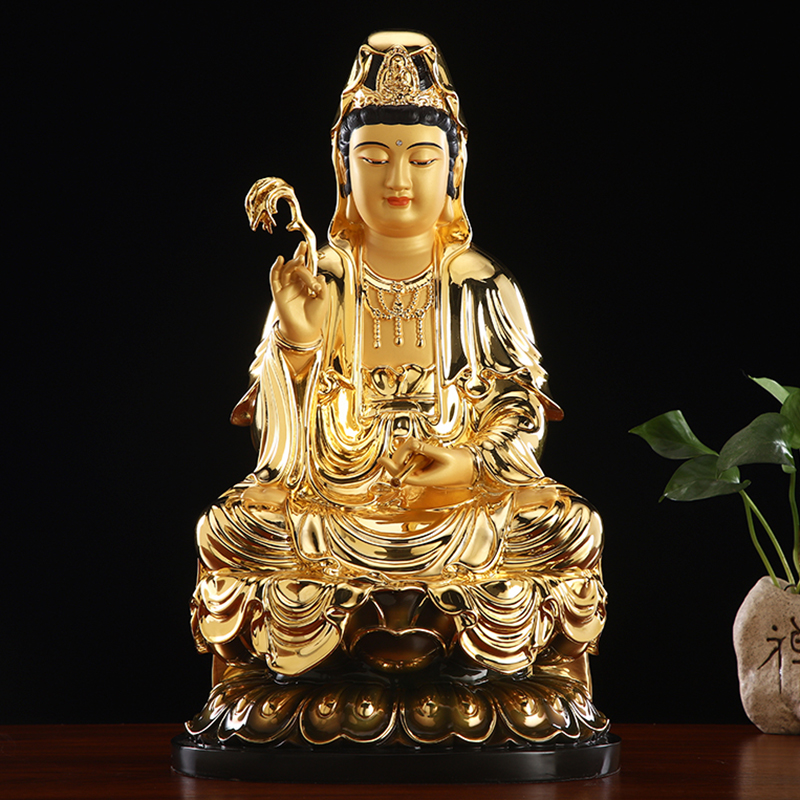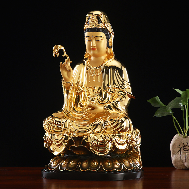 台湾纯铜观音菩萨家用供奉观音佛像坐莲纳米鎏金观世音客厅摆件