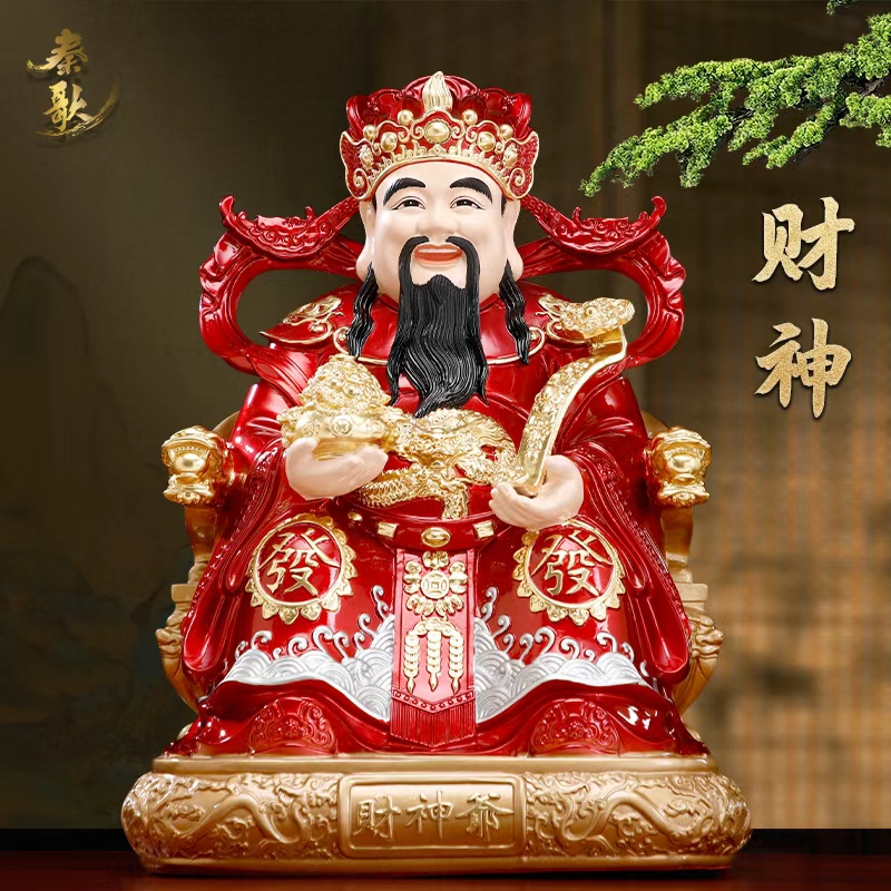 财神爷摆件家用纯铜彩绘财神爷像公司店铺招财聚宝财神爷供奉神像