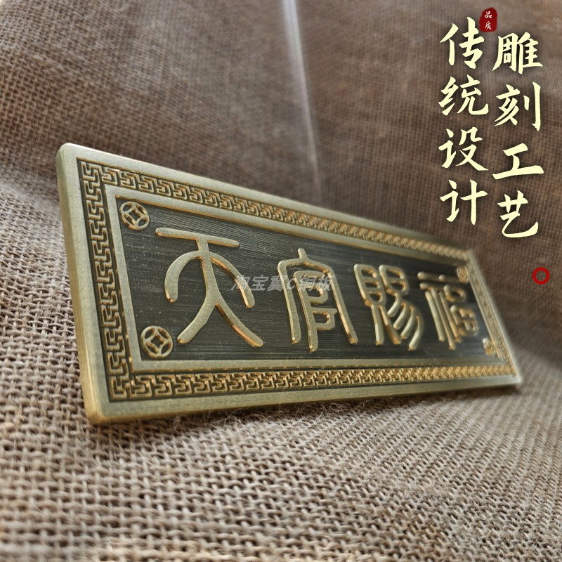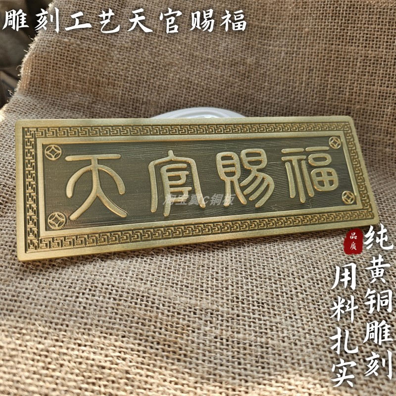 天官赐福门对门牌匾横批牌挂件纯黄铜挂饰品客厅入户门贴定制家居