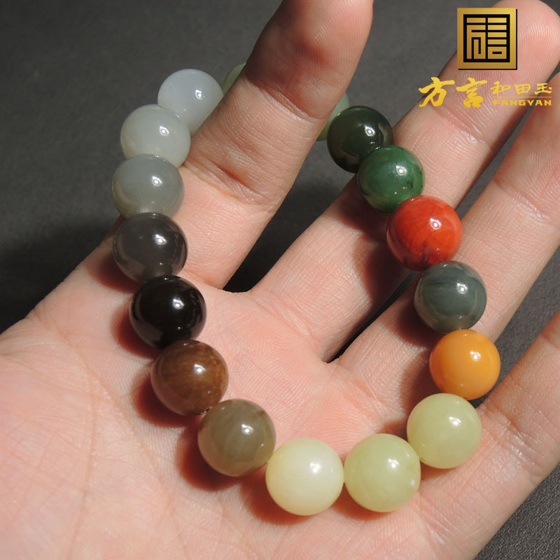 方言特色和田玉新疆且末糖青海烟紫俄碧玉多宝糖果色卡12mm手串R3