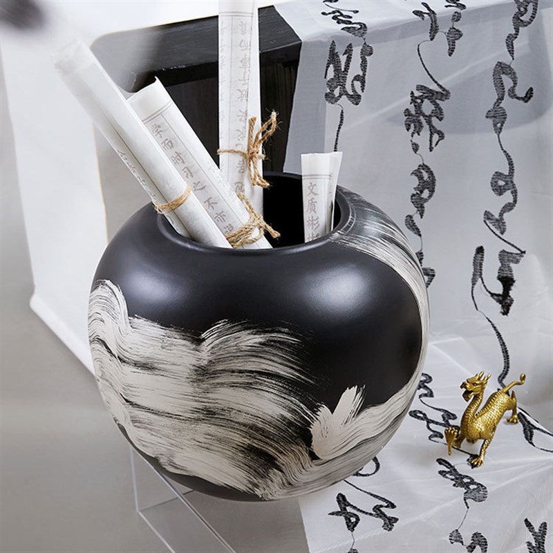 新中式黑色水墨花瓶样板房酒w店书柜茶几桌面玄关黑白花器软装摆