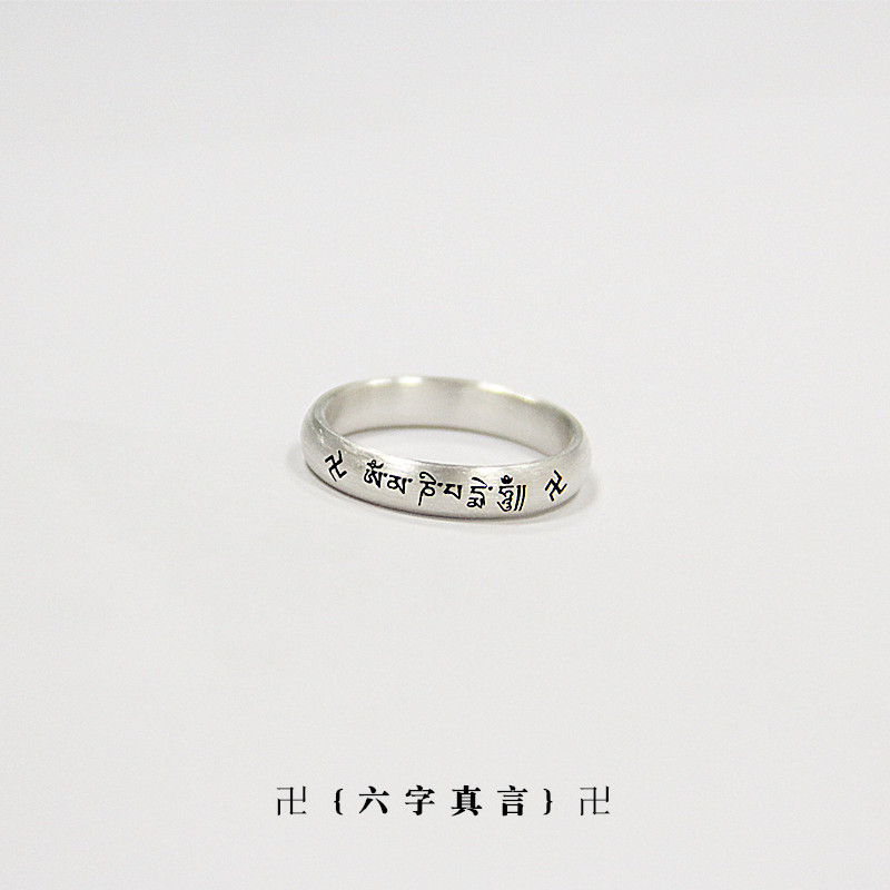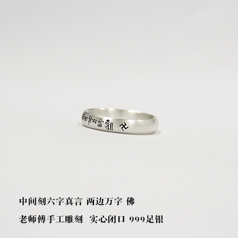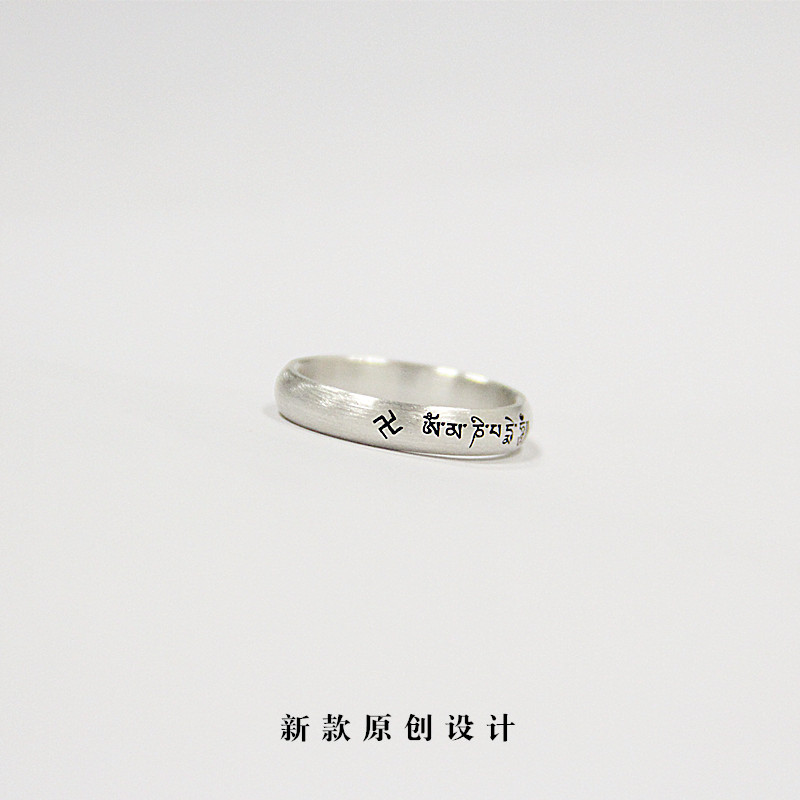 原创设计S999纯银戒指男女情侣复古六字真言古法指环定制定做刻字
