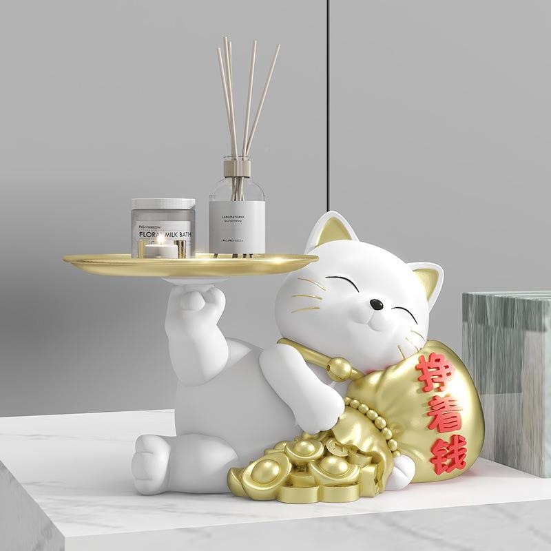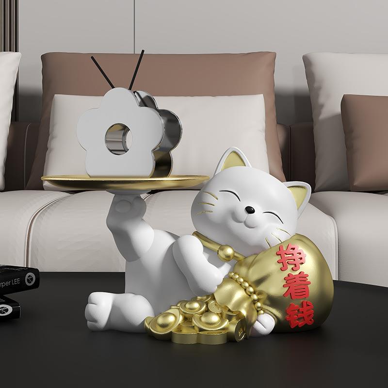 件创意托盘猫桌面摆客厅茶公几餐桌电视柜入玄关书户房办QJ6582室