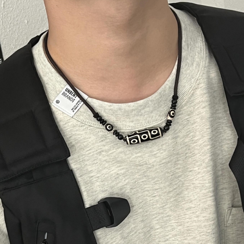 藏式玛瑙九眼天珠项链男士吊坠锁骨链个性百搭挂件民族风学生饰品