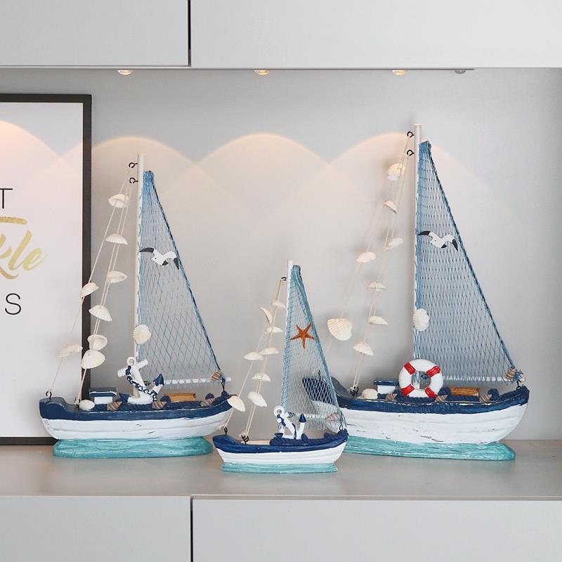 地中海帆船模型摆件一帆风顺木质小船工艺船家居装饰品海边纪礼品