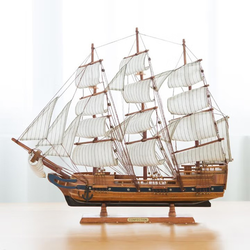 木质一帆风顺摆件仿真大号帆船模型满载而归客厅别墅玄关艺术摆设