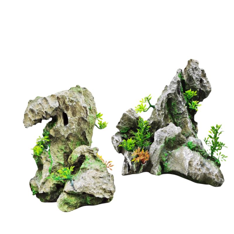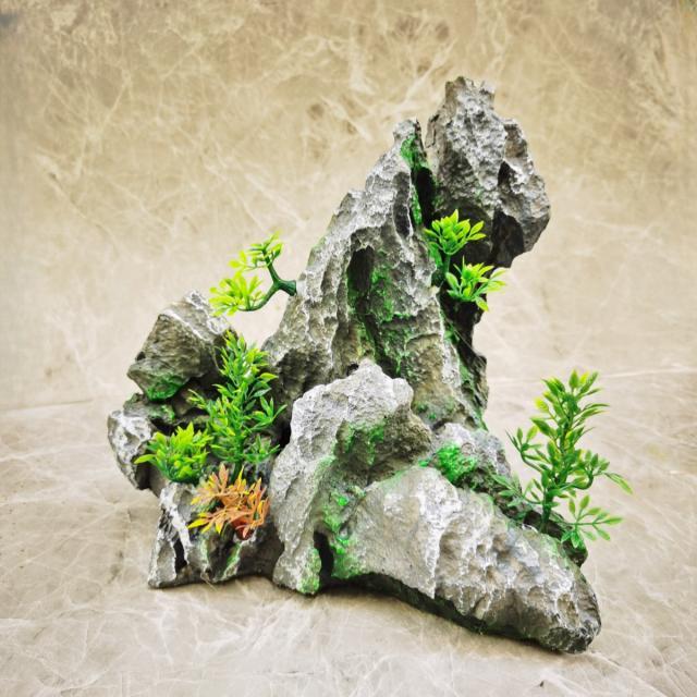 新中式假山石装饰 桌面地面摆景树脂假山石 水族鱼缸流水盆景摆件