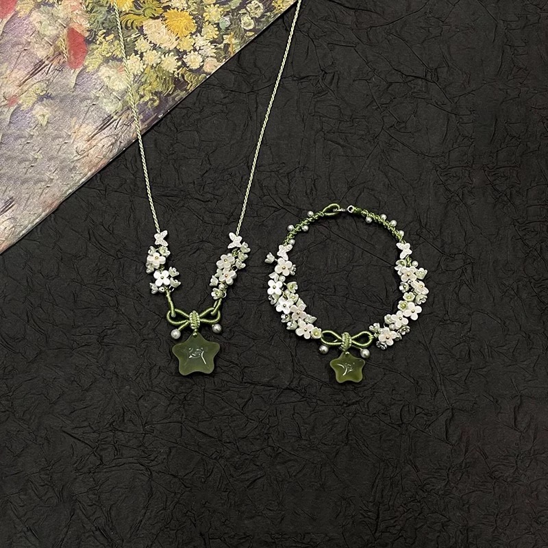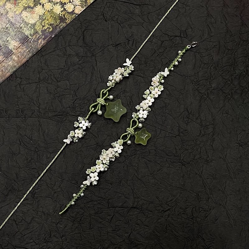 蝴蝶笑脸星星绿色手链2025新款新中式森系手工编织高颜值独特手饰