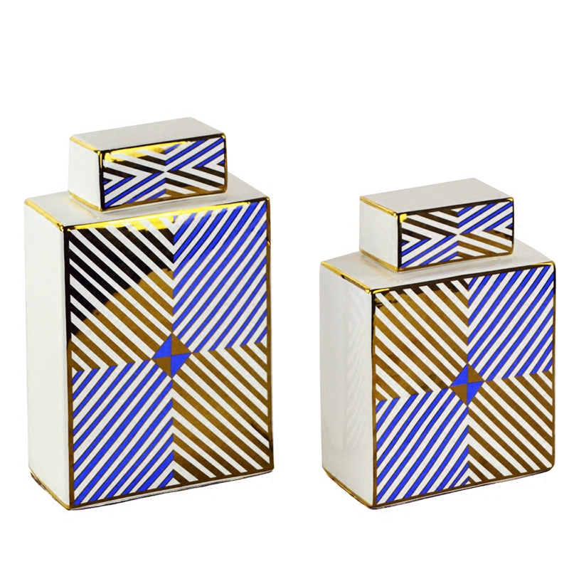 现代轻奢美欧式样板间白金蓝色家居装饰罐电视书酒柜陶瓷摆件包邮
