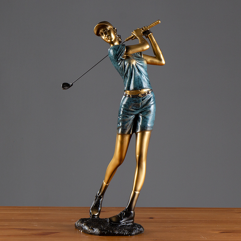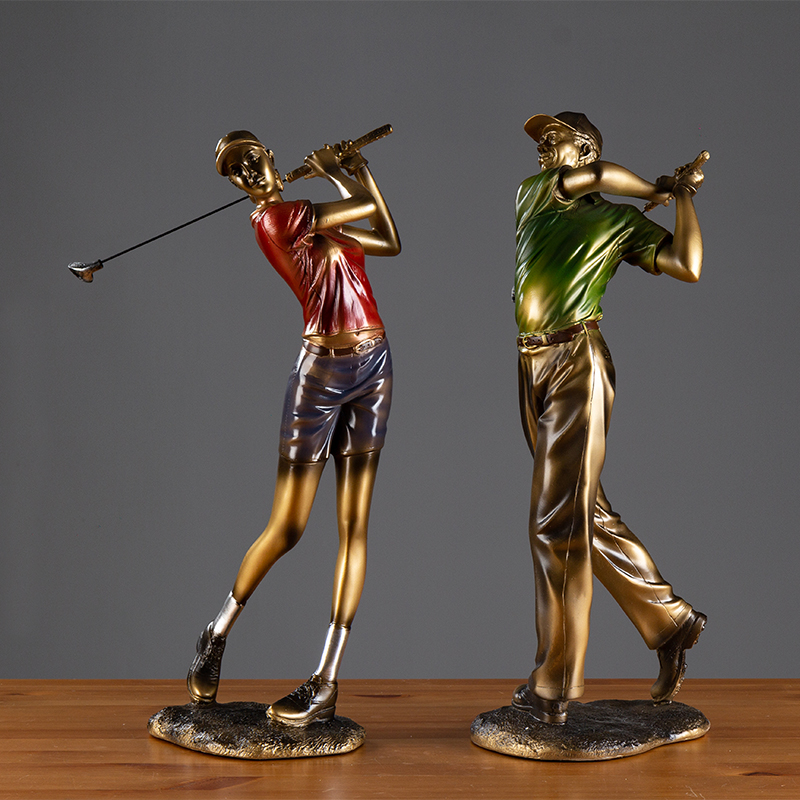 欧式打高尔夫雕塑人物客厅电视柜酒柜软装饰品办公室书.柜轻奢摆