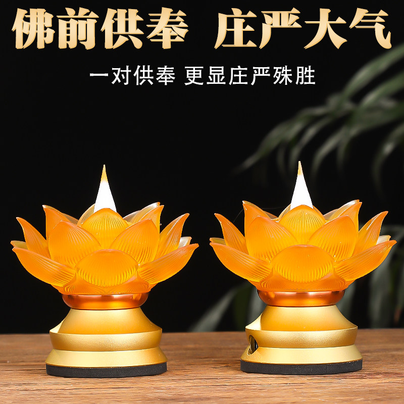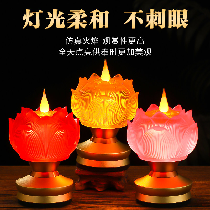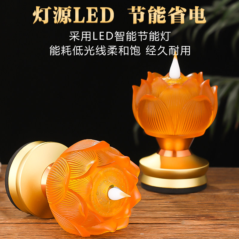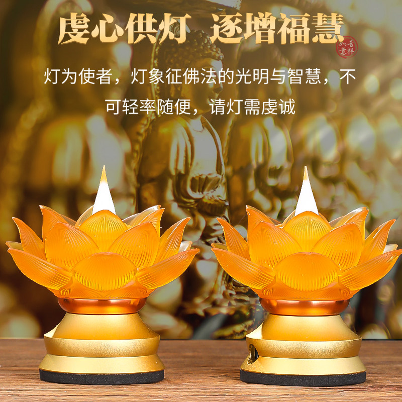 新款琉璃仿真莲花灯家用led充电莲花灯长明灯佛堂供奉用品供佛灯