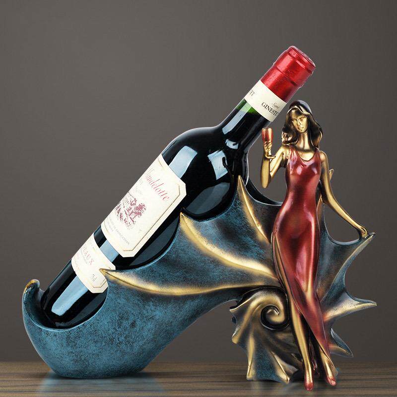 欧式仿古蓝色美女酒架客厅书房装饰品厨房酒柜饰品树脂工艺品摆件