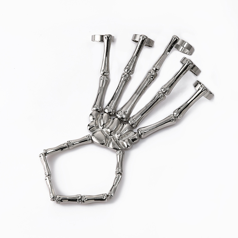 男生骷髅手链体育生S男M骨骼手指链型男网红舞蹈手模可调节手骨链