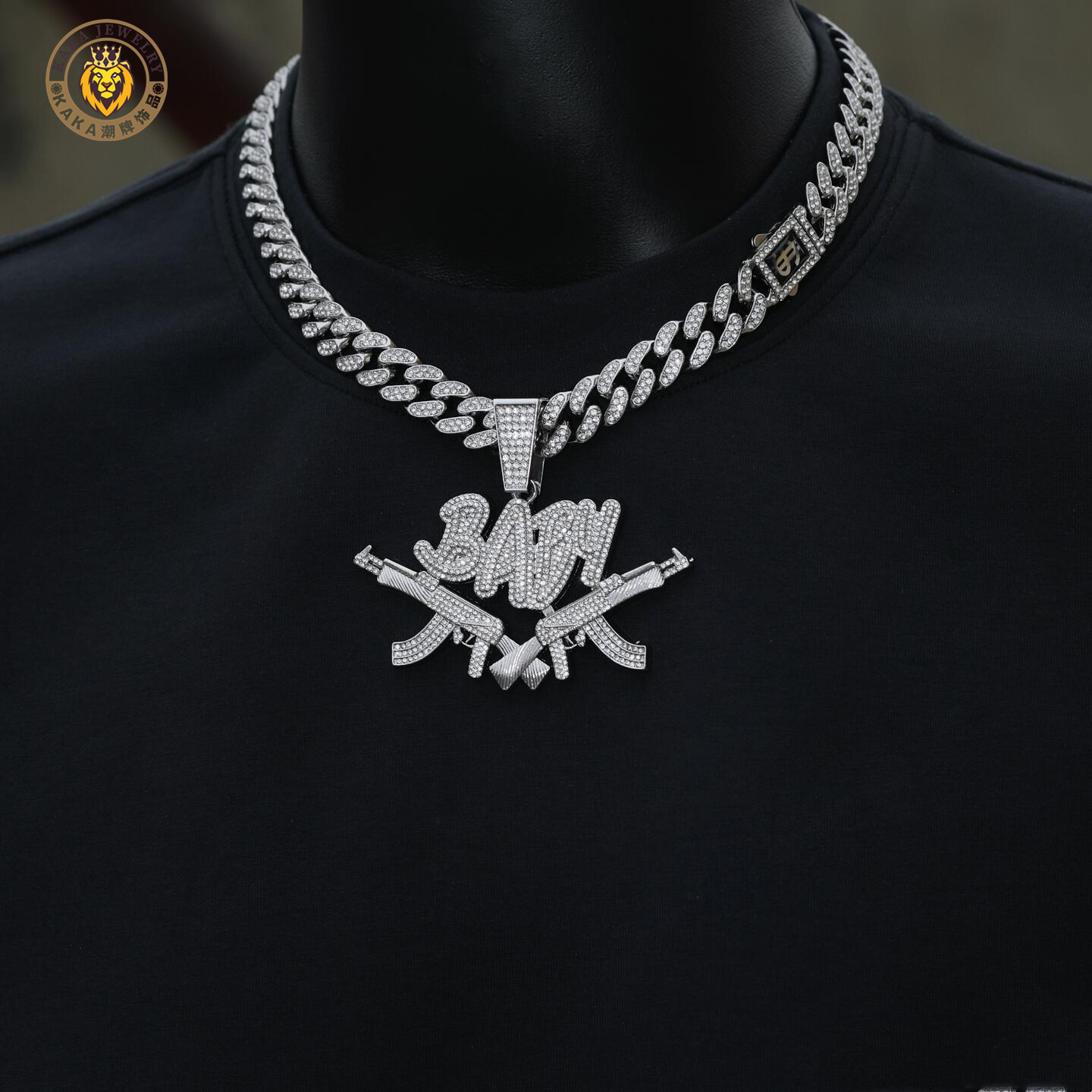 美式街头嘻哈项链双枪BABY满钻重工菱形古巴链美元符号扣头锁骨链
