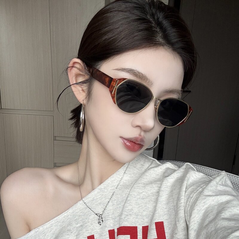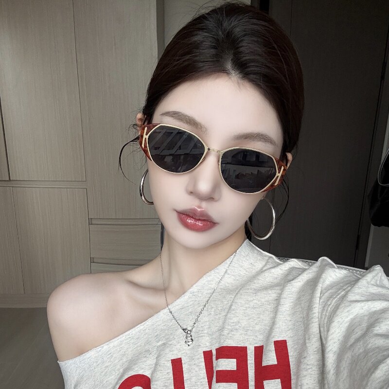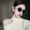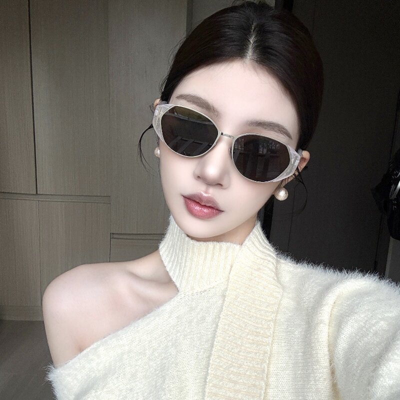 复古透明白小冰块墨镜女猫眼方圆脸显瘦欧美风高级网感2026太阳镜