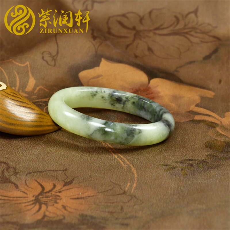 紫润轩新疆和田玉黄玉青花手镯黄口若羌料黄玉55 6MM纯天然收藏级