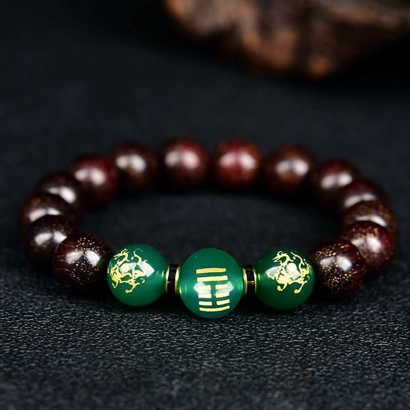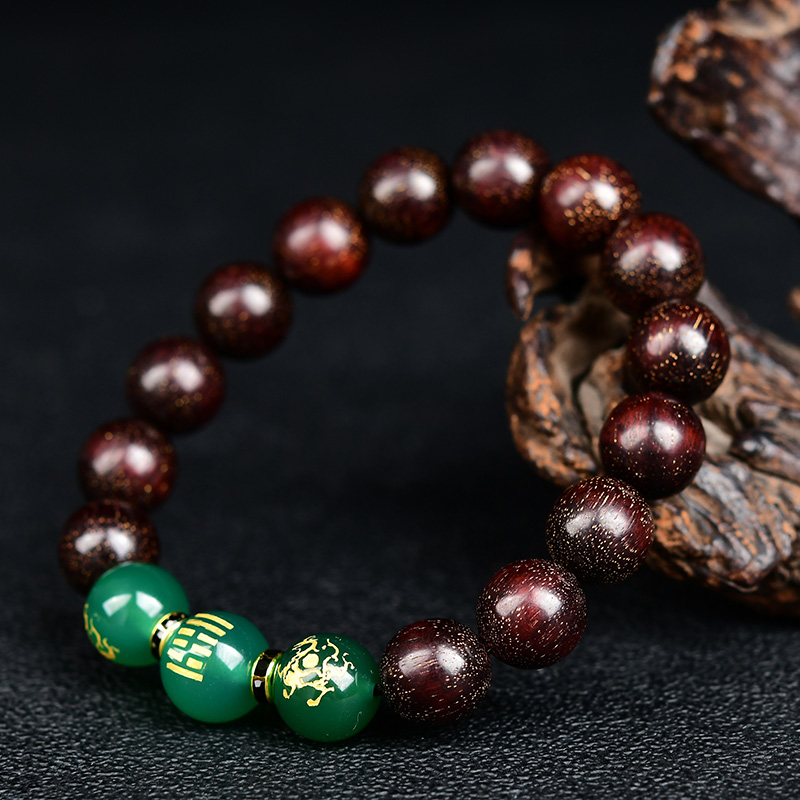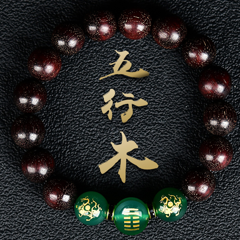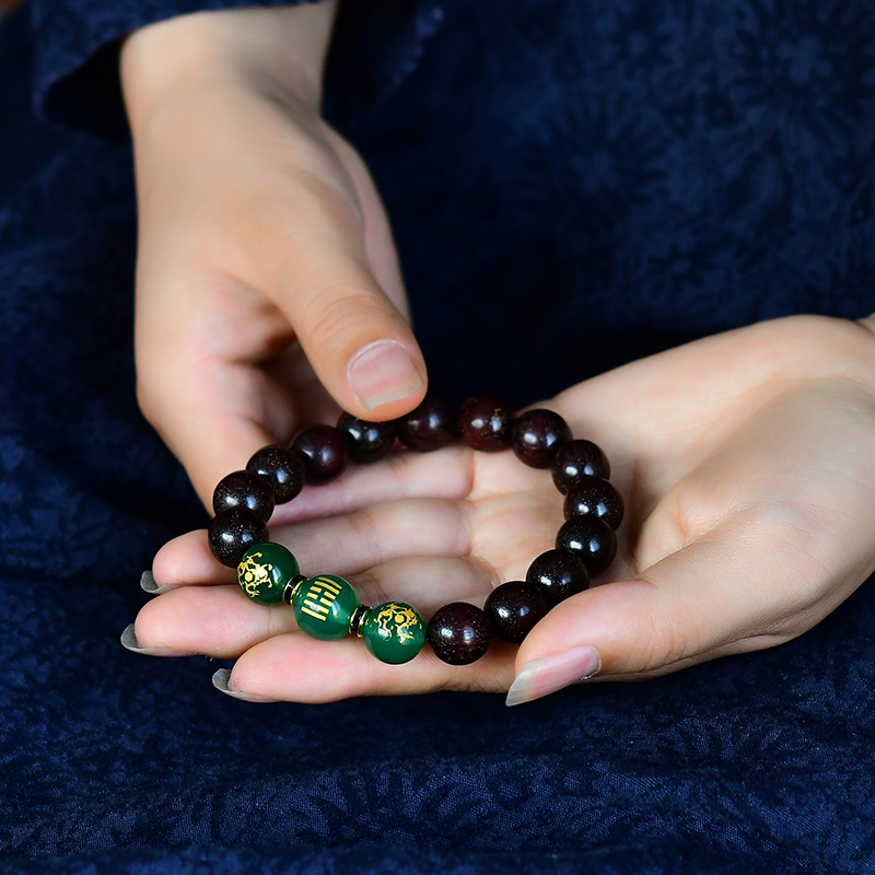 属木手链男女士天然绿玉髓小叶紫檀手链手串风雷益木挂饰品首饰