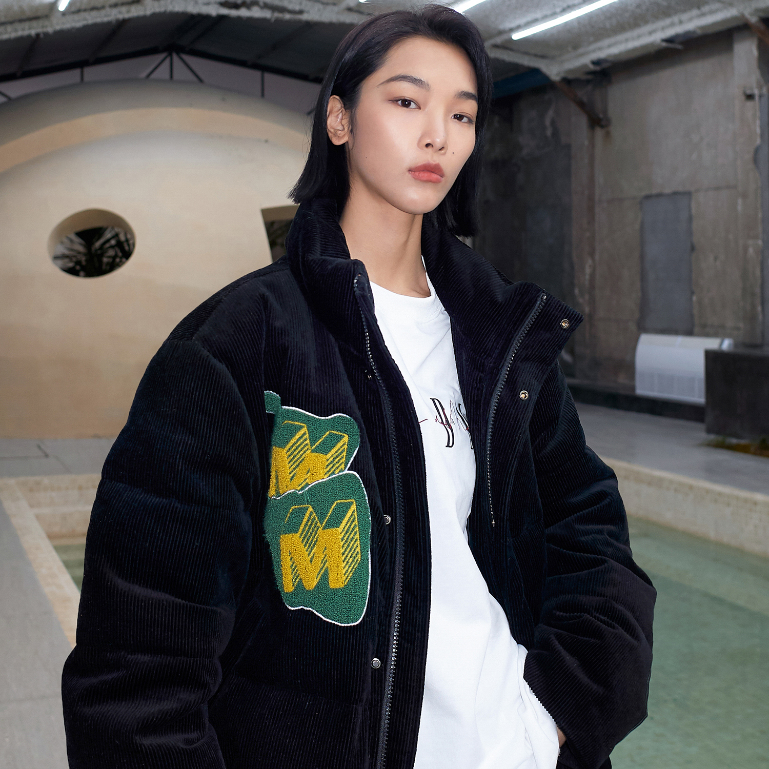 MEDM灯芯绒立体刺绣加厚羽绒服男宽松冬季潮流保暖外套高街情侣装