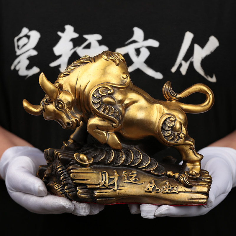 速发铜牛厅件招市旺财牛工艺装饰品招财办公桌室客摆华尔街牛