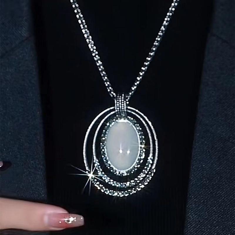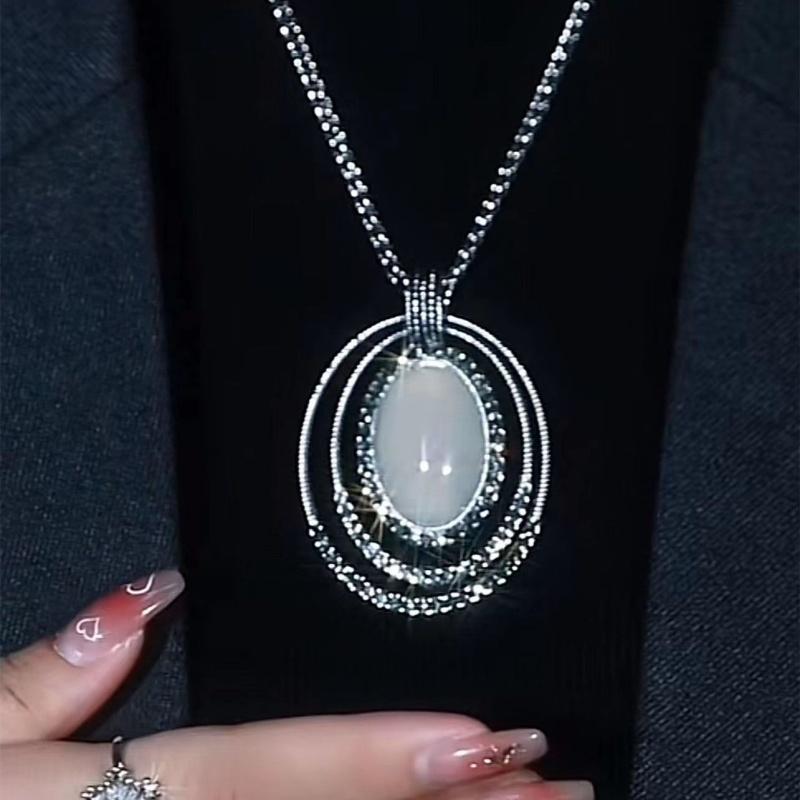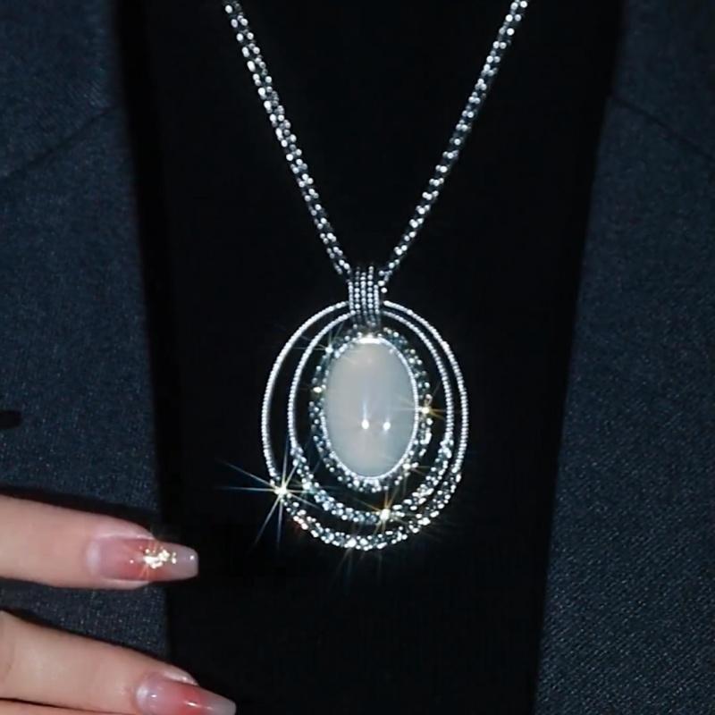 复古做旧猫眼石吊坠长款项链时尚高级感毛衣链轻奢大气衣服配饰潮