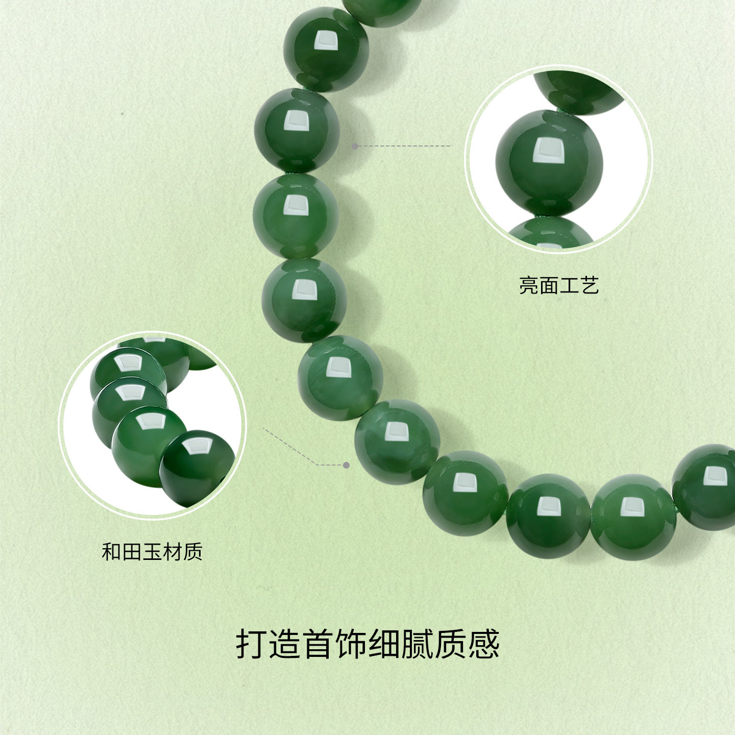 周六福玉石手串女款玉石和田碧玉手链手饰送女友新年礼物官方正品