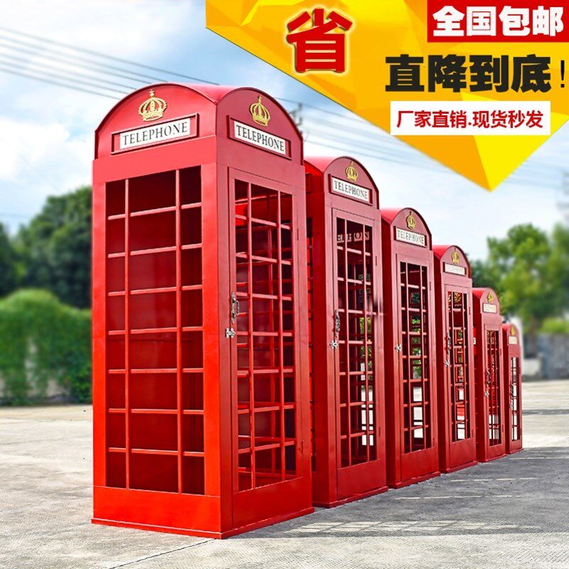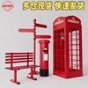 复古红色电话亭套装组合大型移动铁艺美陈软装邮筒路牌公园椅亭子