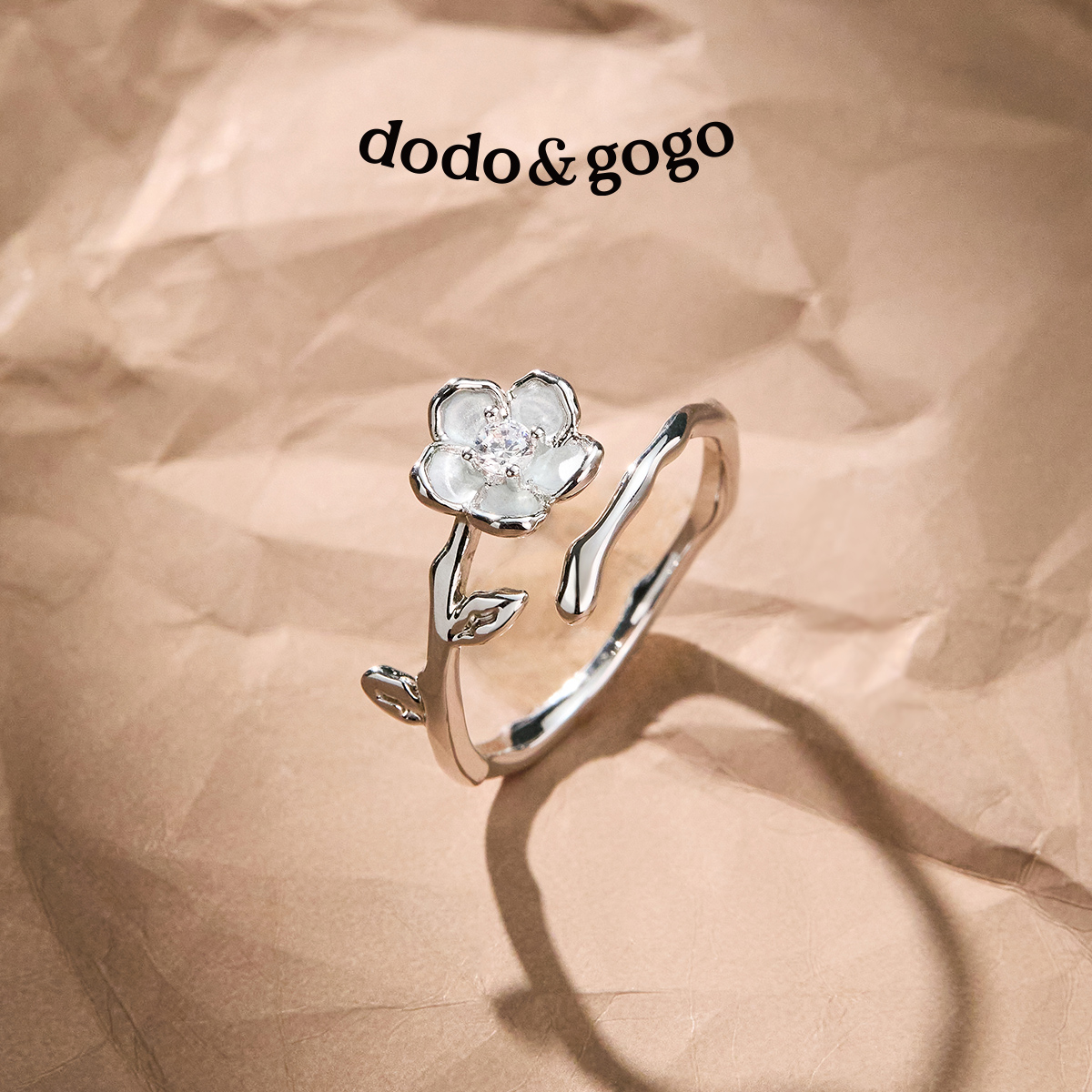 DODOGOGO玫瑰花开口戒女款简约高级小众设计可调节开口食指环戒指