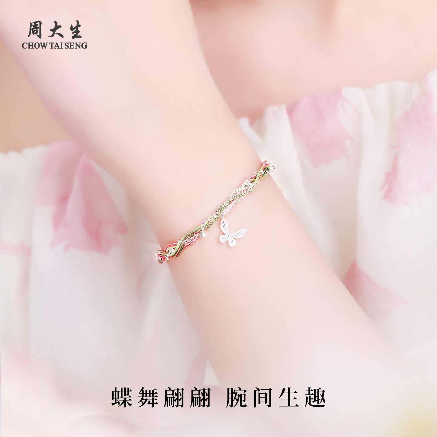 周大生官方S925银手链秘密花园蝴蝶手绳女手饰闺蜜生日礼物送女友