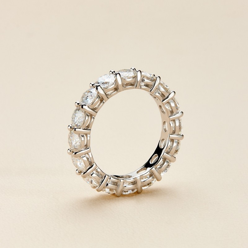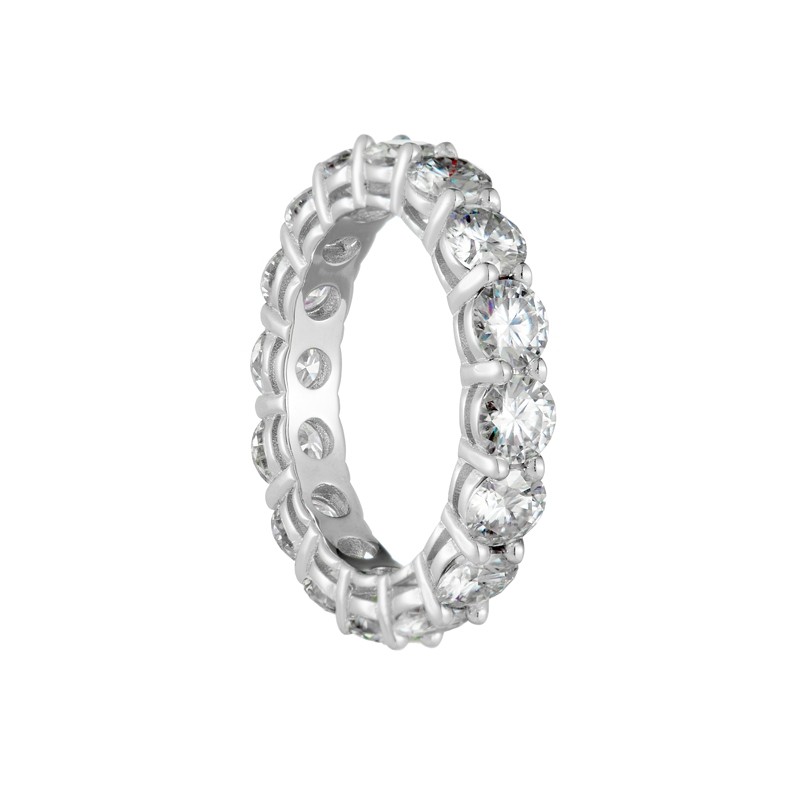 AHCHOO 静奢5mm莫桑石钻白金戒指925银满镶钻指环超闪情侣送礼