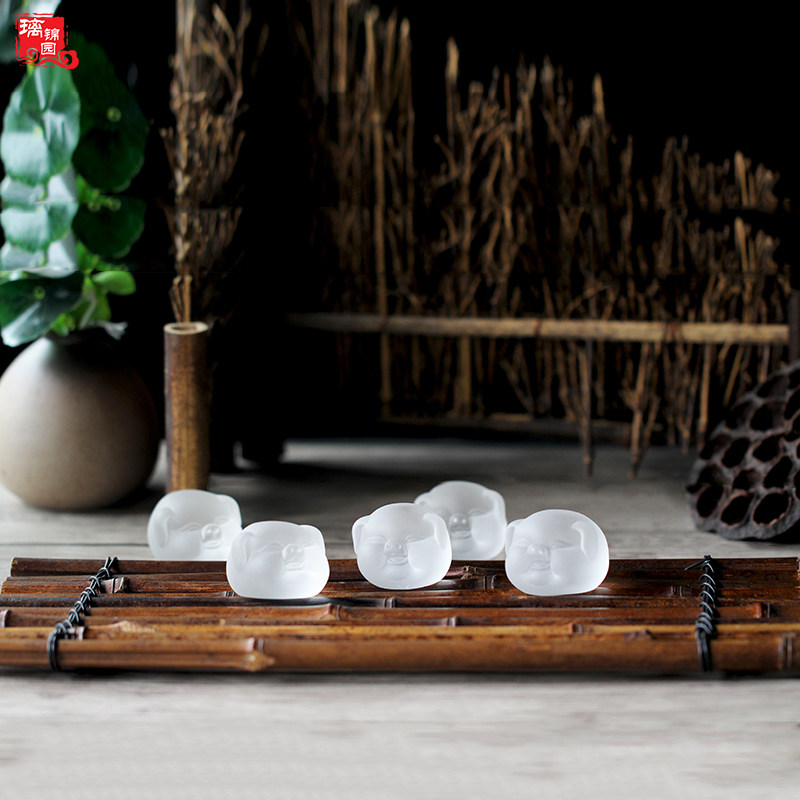 古法琉璃茶宠白色磨砂小猪纯手工禅意桌面摆件吉祥如意装饰品