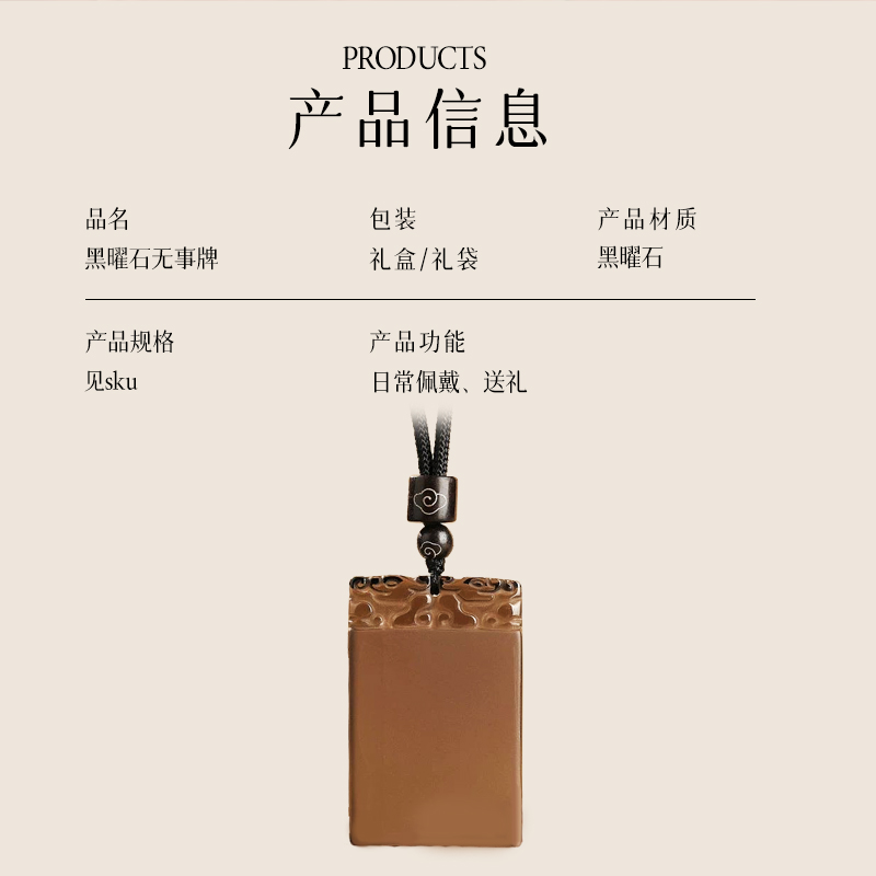 遇见普陀山天然冰种黑曜石平安无事牌吊坠男女本命年转运护身项链