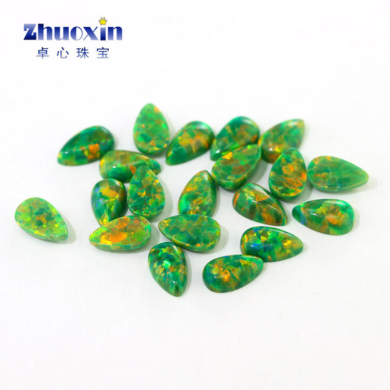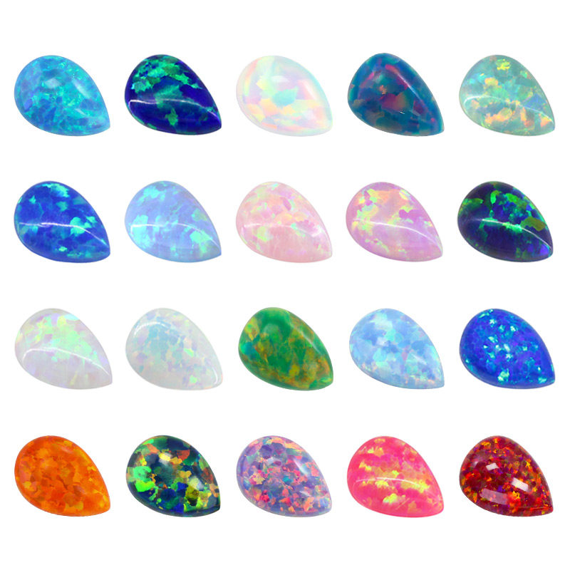 梨形素面合成澳宝组合 平底蛋面人造欧泊石宝石水滴裸石多色变彩