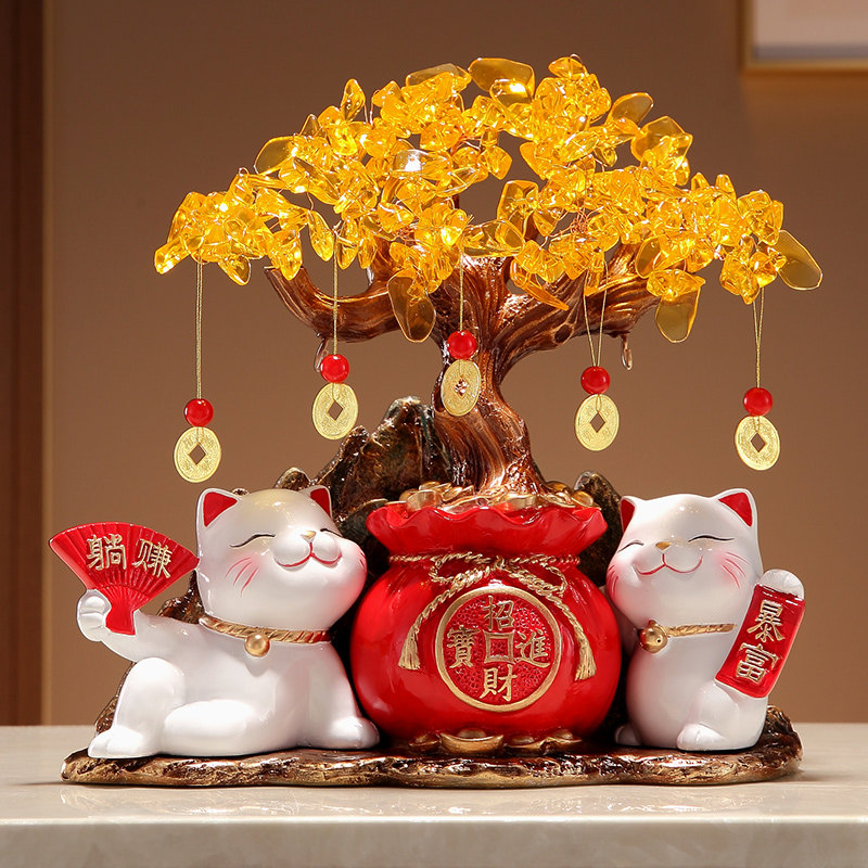 发财树招财猫摆件收银台开业礼物客厅电视酒柜装饰品结婚乔迁礼品