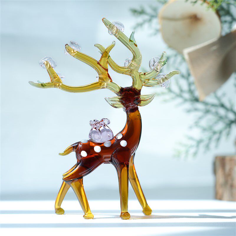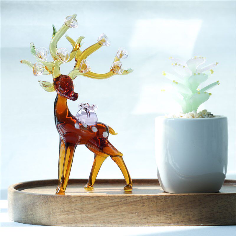 淄博琉璃手工艺品招财梅花鹿桌面摆件一路有钱家居办公书桌装饰品