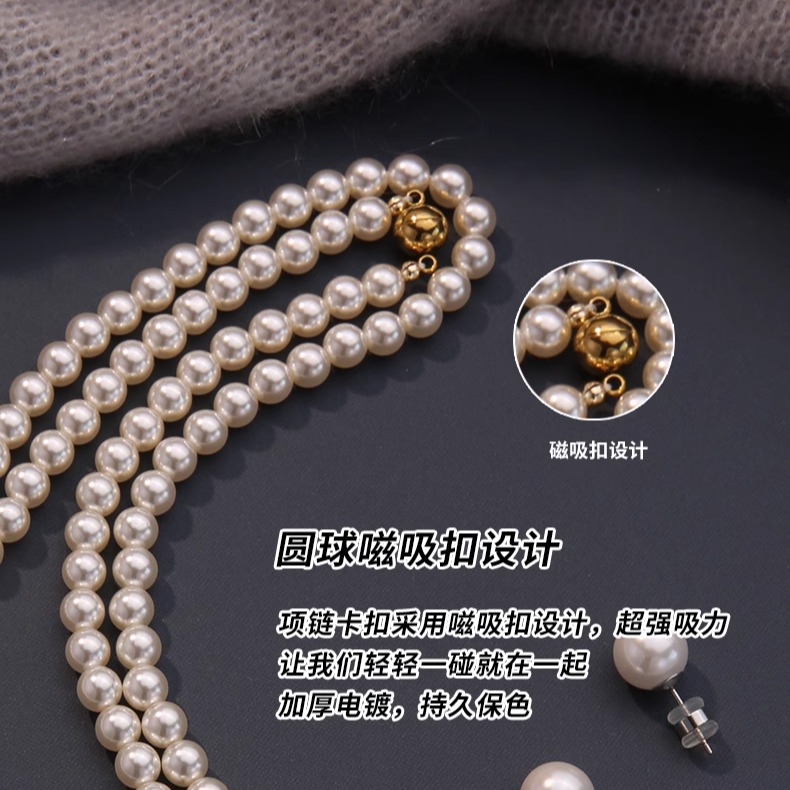 叠戴施家珍珠项链高级感轻奢小众首饰串珠项链长配饰女秋冬毛衣链