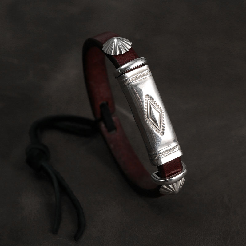 三沐高桥吾郎samgoros三目银块皮手镯潮男女原色红棕色枥木皮手环