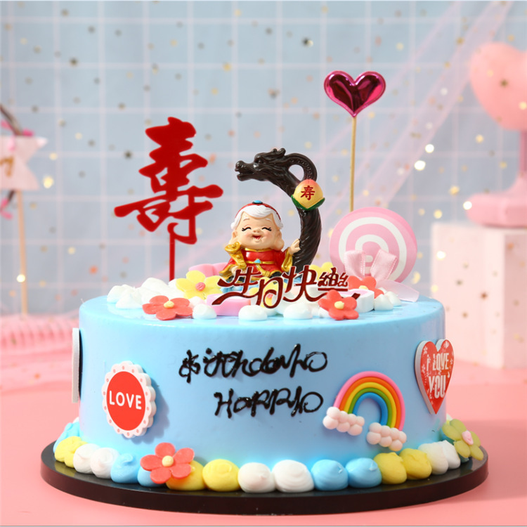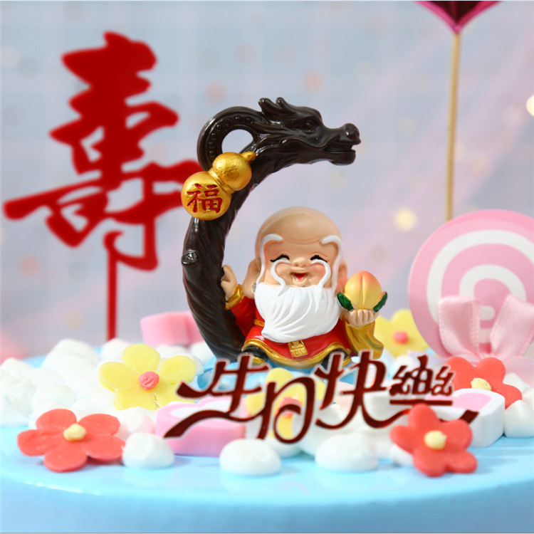 生日蛋糕烘焙插件树脂寿公寿婆寿星装饰摆件家居汽车车载卡通摆件