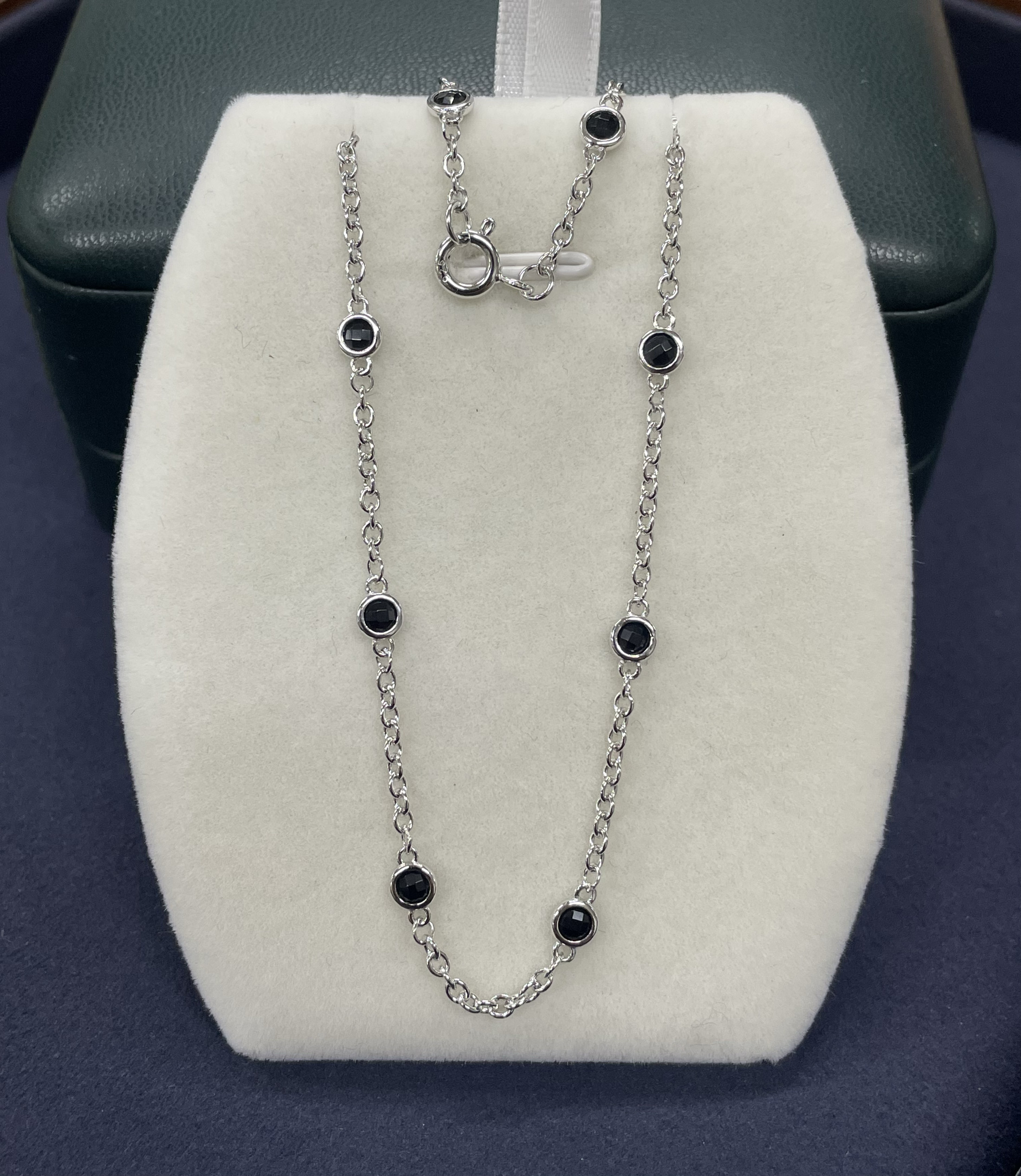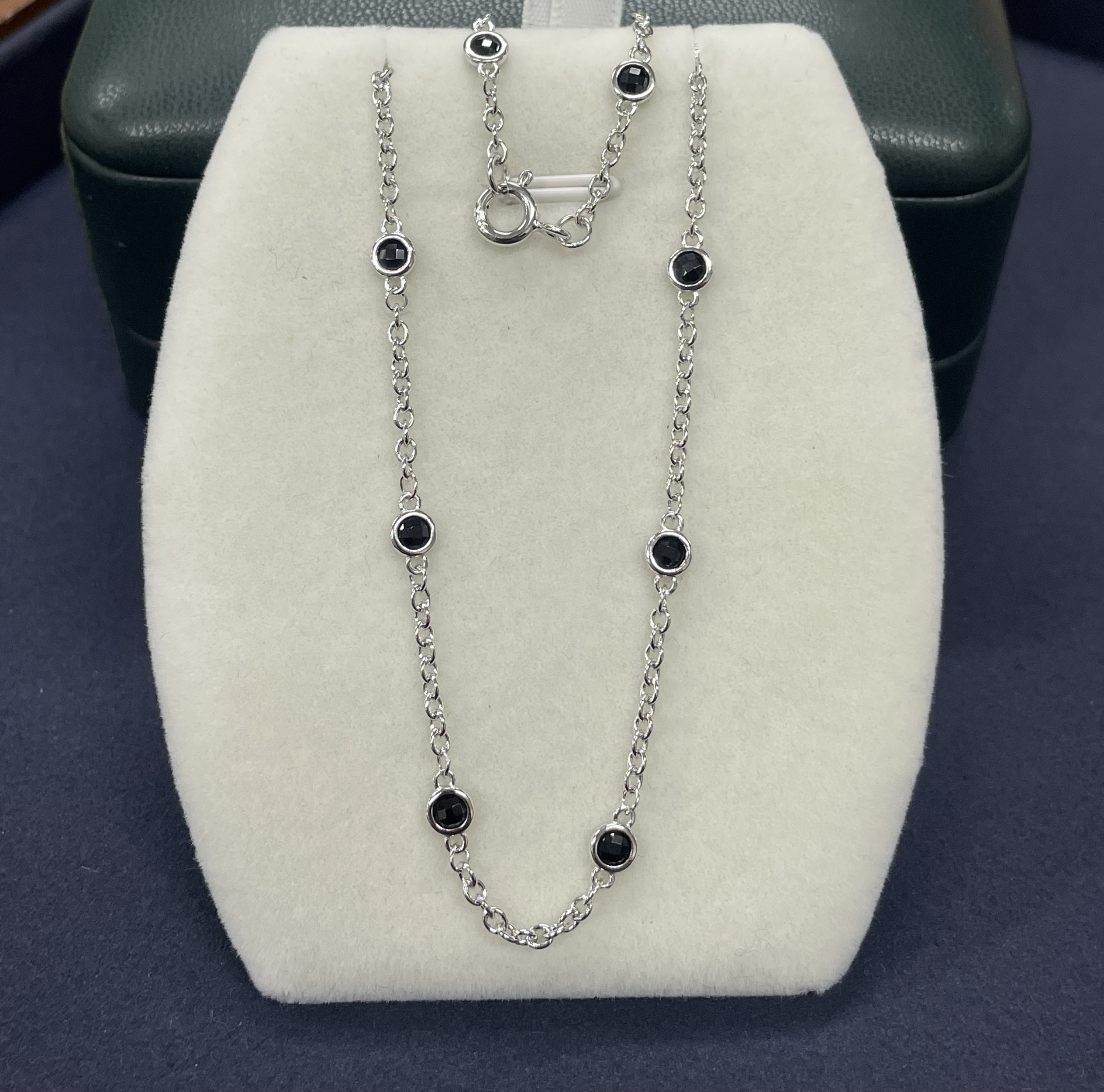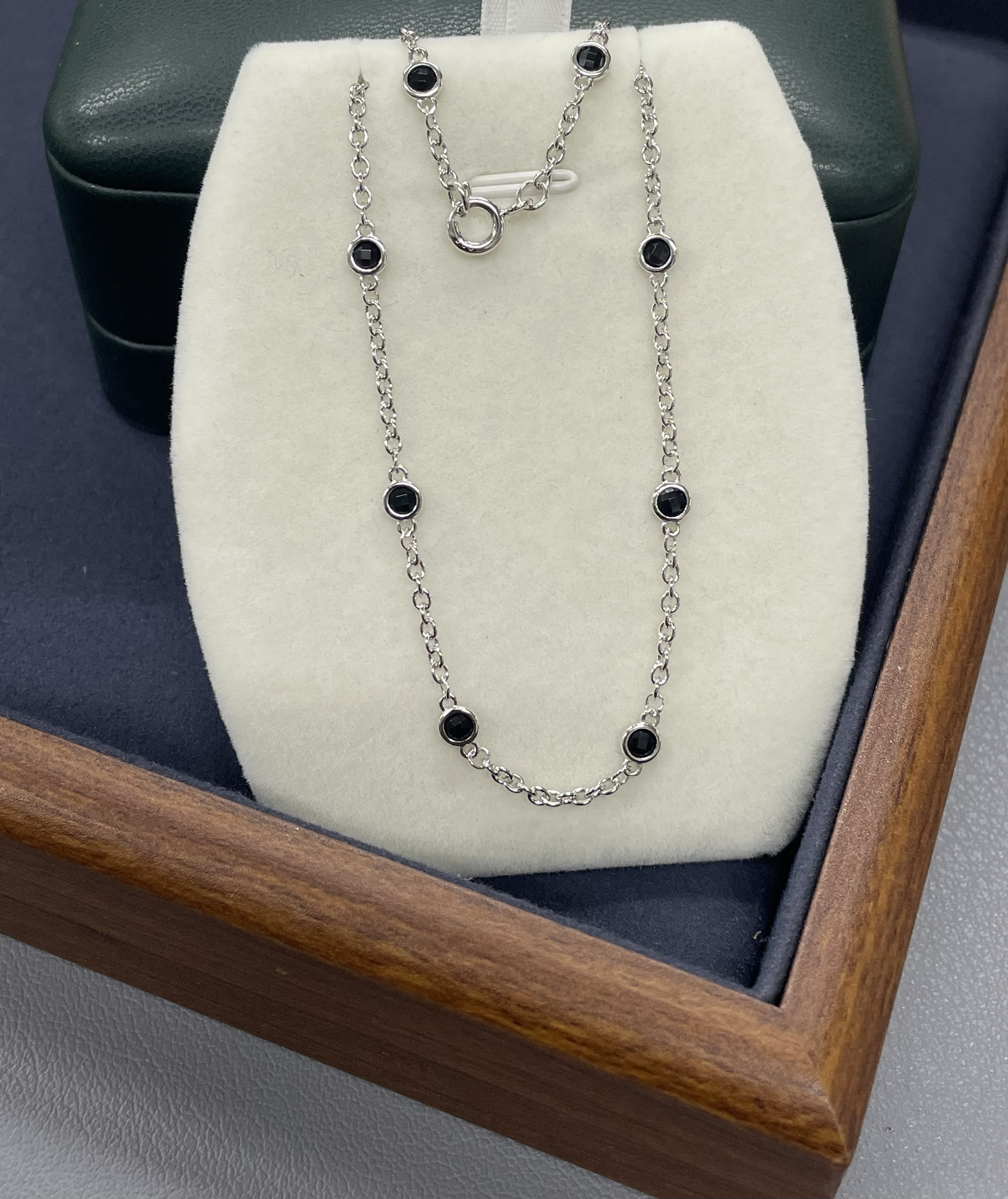 S925银镀白金满天星项链女法式黑色石轻奢锁骨链叠戴链