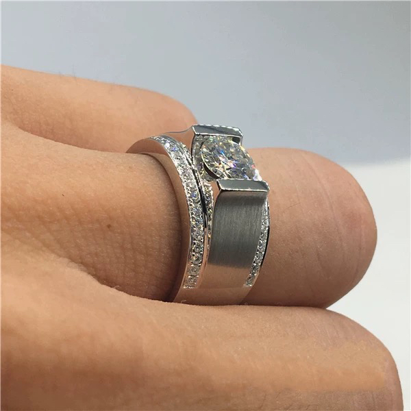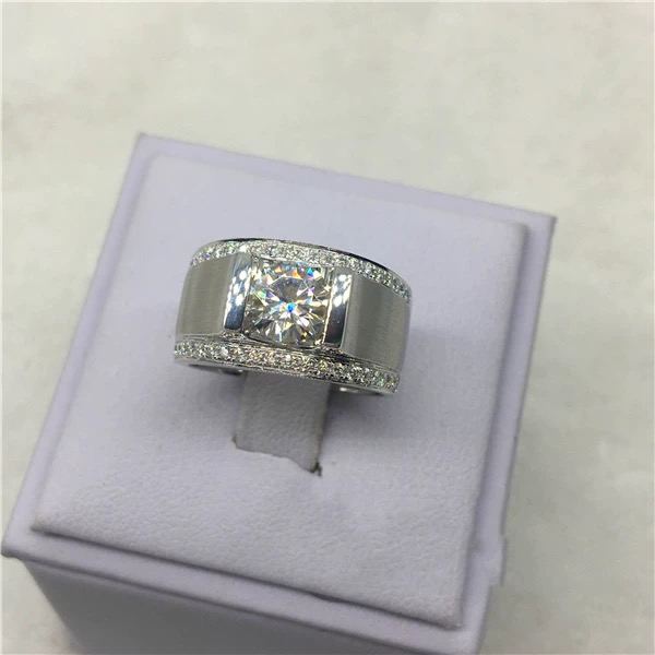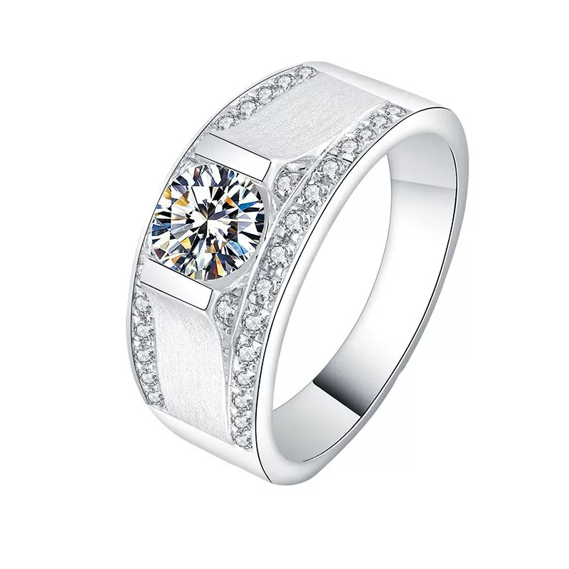 18K白金男士钻戒正品pt950铂金钻石戒指指环 1-2克拉简约男士戒子