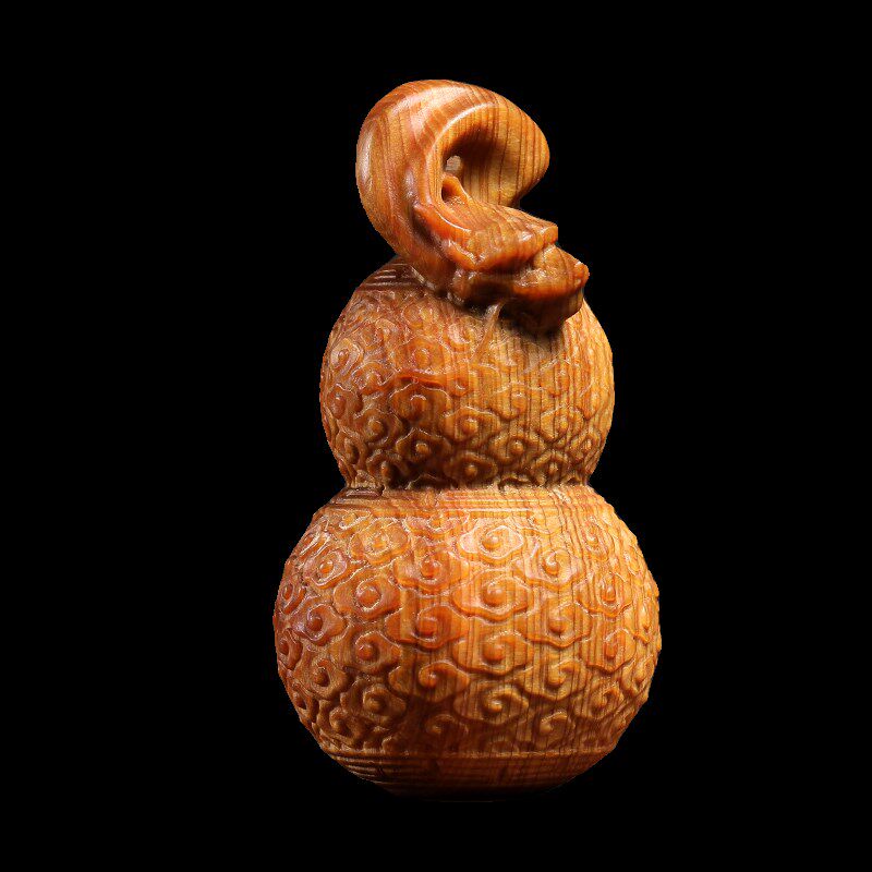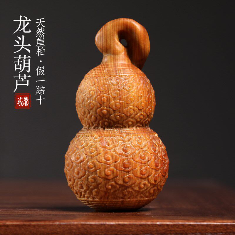 天然崖柏木葫芦摆件文玩手工龙年生肖龙头葫芦祥云福禄吉祥手把件