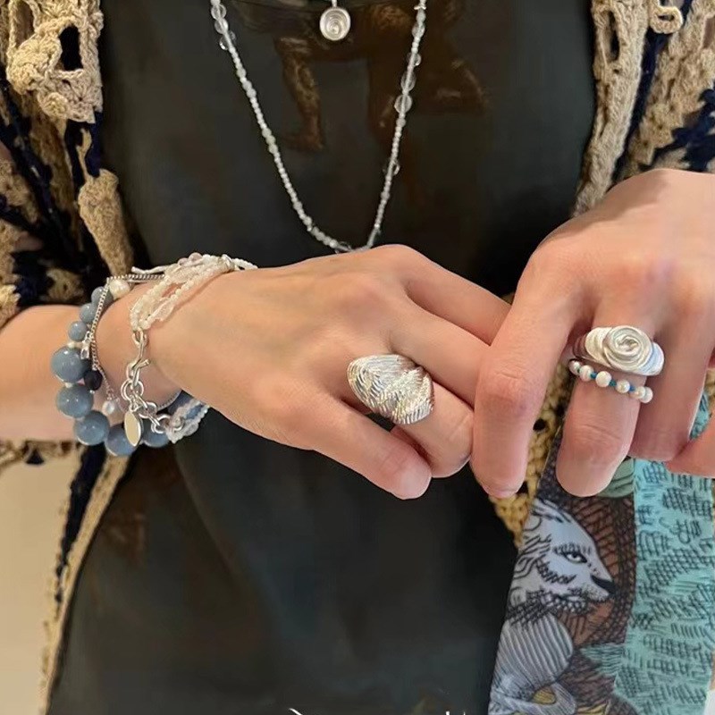 法式螺旋肌理开口银色戒指女小众设计复古个性S叠戴指环百搭时髦