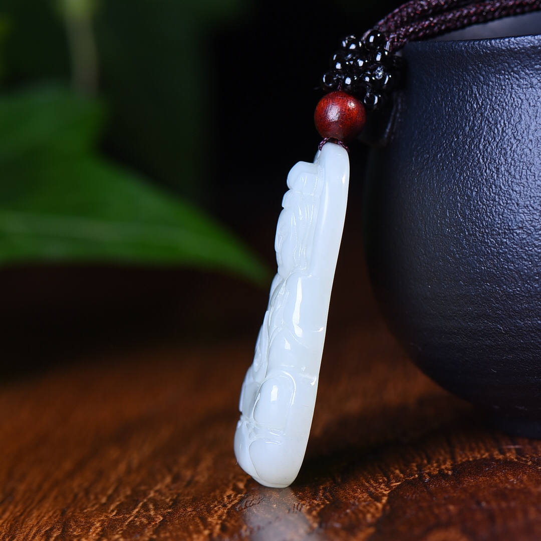 新疆和田玉羊脂玉白玉青白玉送福观世音吊坠男女士款挂件玉坠玉佩