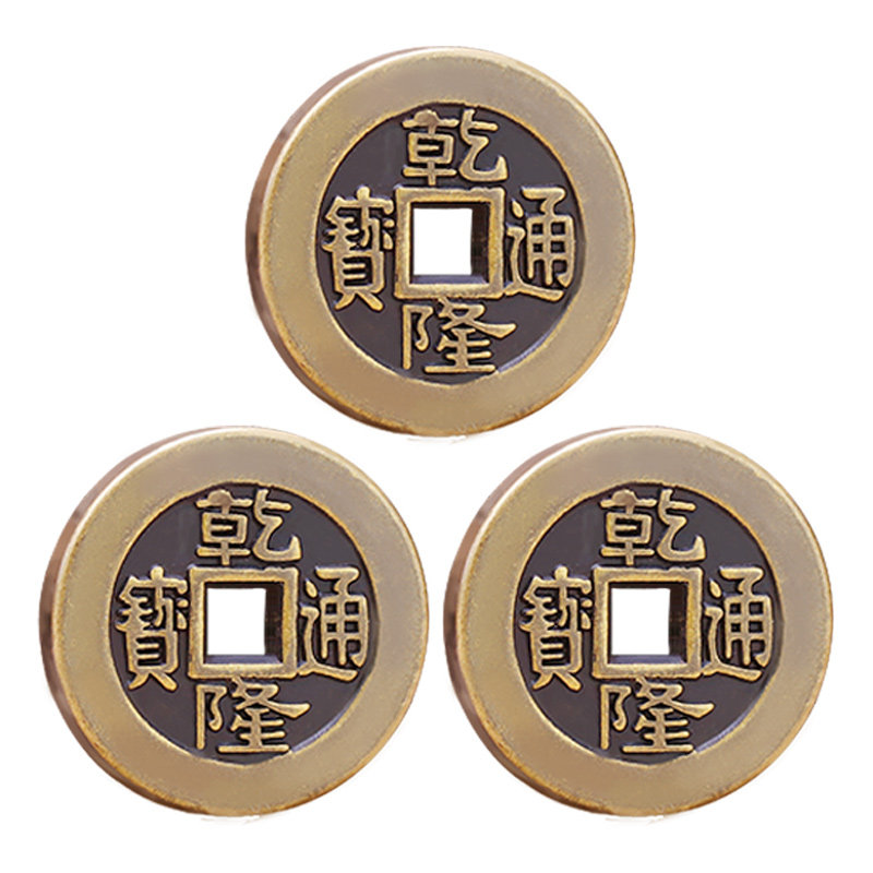 乾隆通宝古铜钱黄铜起卦工具大样三枚古钱币加厚六爻摇卦压门槛